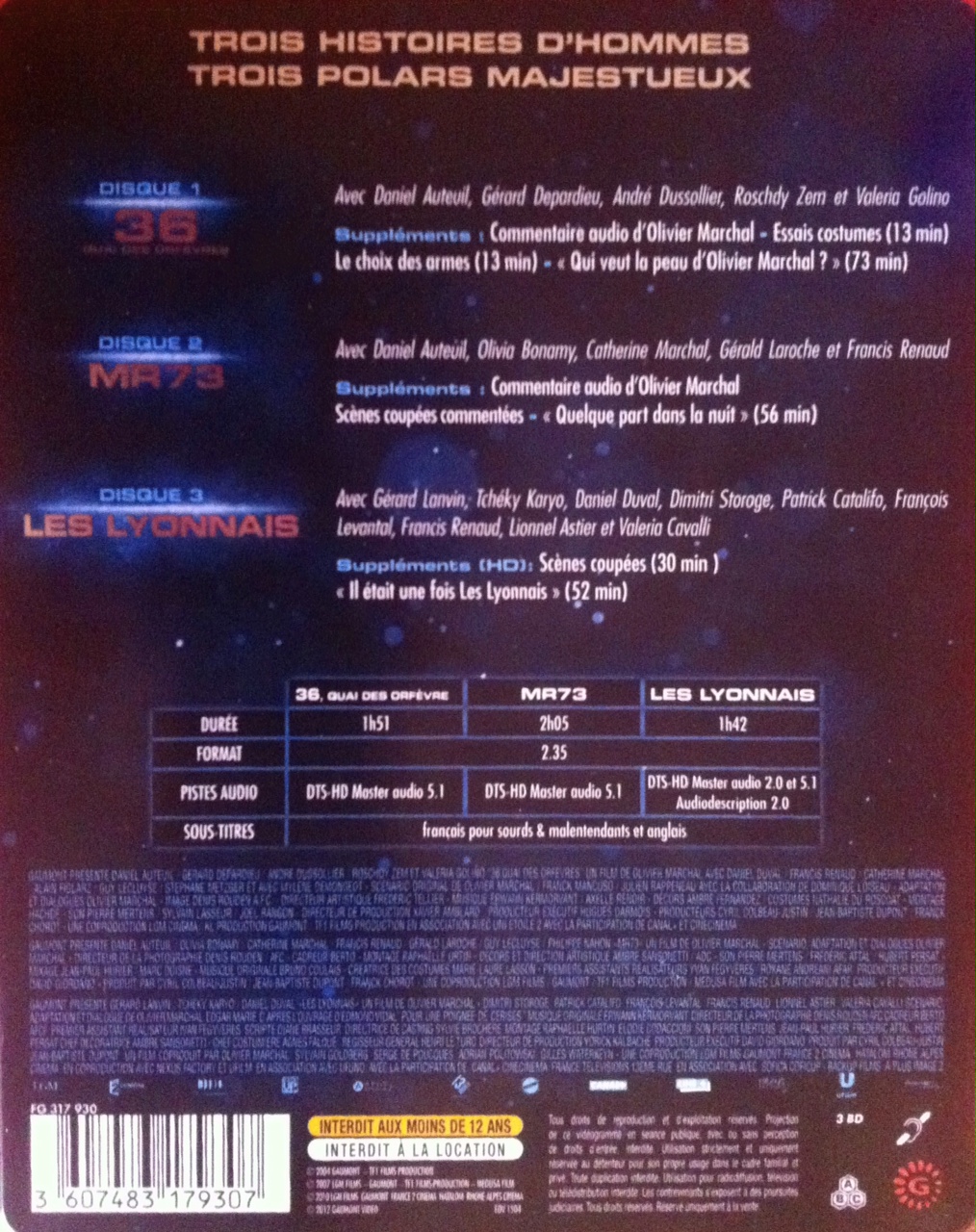A l’occasion de la sortie en DVD et Blu Ray du film Les Lyonnais réalisé par Olivier Marchal, la Gaumont, publie un coffret steelbook regroupant également 36 Quai des Orfèvres et MR73, les deux précédents films du metteur en scène.