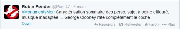 D’abord chéri par l’Academy, Monuments Men a commencé à subir un petit backlash peu de temps avant l’Oscar Season (décalage de sa sortie us). On comprend désormais pourquoi, le nouveau long-métrage de l’acteur cinéaste Clooney est en effet une œuvre mal ciselée, qui n’aurait certainement écopé d’aucune nomination. Un film décousu qui aurait sans doute gagné à exploiter davantage son sujet en or et sa belle brochette d’acteurs. De même, on regrette que Clooney se soit contenté de si peu sur le plan de la mise en scène et du scénario, qui ne répondent hélas jamais aux ambitions affichées.