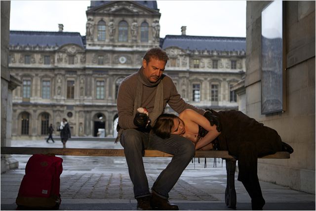 3 days to kill 1Kevin Costner campe un agent secret vulnérable, atteint d’une tumeur cérébrale lui occasionnant quelques vertiges et épistaxis, engagé par une bimbo dans une dernière mission à Paris pour obtenir l’antidote miraculeux au mal dont il souffre. La suite : un film musclé mais surtout décérébré, ne se souciant jamais de détails tels que la crédibilité du script ou le recours abusif à la torture. La capitale française – ses quartiers, sa Tour Eiffel – sert une énième fois (Taxi 2, Le Baiser mortel du dragon, Taken, From Paris With Love …) de terrain de jeu pour terroristes débiles et renforce l’impression d’un long-métrage fonçant obstinément dans les clichés pourris (salon de tatouage dans les catacombes, balade en vélo, méchant chauve surnommé L’Albinos, stupidité des flics du commissariat local, plus disponibles pour regarder du foot à la télé que pour aider le héros …), ou recyclant des situations éculées (le père absent qui n’a pas vu grandir sa fille), voire même des personnages (le vilain allemand de Taxi, l’ado fêtarde et la mère rigide de Taken) et des chansons (après la BO de Drive dans Taken 2, emprunt de la chanson phare de (500) Jours Ensemble dans celui-ci …). Quant à l’arc narratif « papa Costner renoue avec son ex-femme et sa fille ado », il n’est que prétexte à placer un sentimentalisme bébête, un humour au rabais (les running-gags de la sonnerie de téléphone et du mec dans le coffre), un quota de punchlines franchement moisies et quelques invraisemblances de plus.