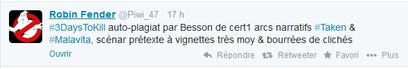 3 days to kill 3Il faut dire que le pauvre est hélas peu aidé par les attributs maladroits de son personnage, sorte d’ersatz de Bryan ‘Liam Neeson’ Mills, le swag en moins, qui n’est jamais réellement crédible (un agent réputé dans le milieu, qui plonge tête baissée dans une mission suicide et des traquenards ?). Amber Heard joue les atouts charme sans se fouler, Connie Nielsen cachetonne reprenant à peu de choses près le rôle tenu par Famke Janssen dans Taken. A leurs côtés, seule la jeune révélation de True Grit, Hailee Stenfield, pétrie de talent, tire son épingle du jeu et convainc, quoique parfois insupportable, mais là encore blâmons tonton Besson. Petit mot enfin sur un miscast absolu, à deux doigts de provoquer la crise d’énurésie collective : le psychiatre du programme court Caméra Café qui interprète ici un dangereux mafieux pas si dangereux. 3 Days to Kill est la dernière « bessonade » en date, un nanar affligeant qui rejoint le cimetière des productions EuropaCorp fabriquées en fast-brainstorming (Colombiana, From Paris With Love, Banlieue 13, Taken …).