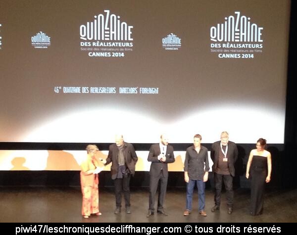 2h15 plus tard, je comprends le « Dolan Effect » de la veille. Mommy est en effet un sacré chef d’œuvre. Excellence sur tous les plans, des acteurs parfaits, un scénario profond et maîtrisé, un traitement bouleversant du sujet, des cadrages d’une beauté époustouflante, des éclairages astucieux, des choix musicaux pertinents, un montage judicieux. Frissons garantis et palme d’or quasi acquise. Après-midi « relax » si j’ose dire, il faut écrire (encore et toujours). La productivité est moindre qu’il y a une semaine, les efforts d’attention plus soutenus, mais pas grave, l’envie est là et la joie de pouvoir profiter de ce festival encore un jour de plus me maintiennent éveillés.Je baigne dans l’indécision la plus totale pour le film de ce soir : vais-je « rattraper Still The Water le dernier Naomi Kawase qui a beaucoup fait parler de lui il y a deux jours et dont on prédit un prix, vais-je voir Hippocrate, film de clôture de la semaine de la critique, ou est-ce que je m’élance vers le théâtre Marriott pour Alleluia, le Fabrice du Welz ? À moins que mon choix ne se porte sur une copie remasterisée de Massacre à la tronçonneuse, projetée à la Quinzaine des Réalisateurs. Autre option envisageable : pancarter une dernière fois pour revoir immédiatement le Dolan. Décision finale : ce sera Massacre à la tronçonneuse, en version resmaterisée, car ce soir, j’ai envie d’un chef d’œuvre. Magnifique copie, ambiance fabuleuse.
