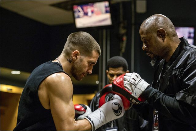 Prisoners, Enemy, Night Call… Jake Gyllenhaal n’a cessé d’impressionner son public depuis ses récentes interprétations méchamment intenses et variées. Rentrant doucement dans la course des acteurs caméléons après avoir creusé ses joues, c’est bétonné de 9 kilos de muscles et complètement métamorphosé qu’il nous revient devant la caméra d’Antoine Fuqua pour La Rage Au Ventre dans une histoire de boxeur aussi touchante qu’un Rocky cognant de la barbaque surgelée. Loin de se la jouer modeste comme notre affectueux rital, Billy Hope est le champion du monde et ne se prive pas de le rappeler en rugissant sur le ring tel un tueur assoiffé de victoires à rajouter à son palmarès irréprochable. La donne bascule quand le provocateur du coin qui demande sa chance lui fait perdre les pédales, conduisant sa femme à un accident mortel. En digne héros scorsesien, la descente aux enfers s’amorce dans une multitude de dangereuses frasques et gloire et prospérité s’effacent au fur et à mesure que son équipe lui tourne le dos et que sa fille ne finisse par ne plus le reconnaitre. Seule issue : re-prendre des cours pour récupérer ses points. Billy décide de retourner vadrouiller dans les rues désaturées d’un New York fauché pour reconquérir son titre. A la recherche du contrôle de sa vie chez un ancien boxeur devenu entraîneur (Forest Whitaker plus attendrissant que jamais) coachant une bande de jeunes novices dopés à la sincérité et l’espoir, Billy n’est pas tant venu pour réapprendre à frapper mais pour briller dans une autre discipline. Celle de boxer contre son instinct dans une lutte intérieure qui lui fait cracher son amour-propre, où les rounds ne se comptent plus et où tout se fait dans l’ombre. Car rien n’a changé au pays du self-made man, l’apanage du winner restera la trivialité d’une salle paumée que la poussière, l’anonymat et l’éclairage bancal contribueront à rendre authentique. Un peu comme un Stallone se laissant éblouir par les paillettes du succès, le challenge survient quand il s’agit de rejouer l’ascension vite oubliée du prolo qui jogge dans les quartiers populaires. Pour Billy, c’est ranger les cartes bleus de la vanité, oublier les gros mots, repartir de zéro en bossant ses droites et déplacements rudimentaires pour revenir de plus belle dans un match retour salvateur et exister à nouveau dans les yeux de sa progéniture. Certes un peu classique, le dépassement du trauma et le parcours de la rédemption n’en sont pourtant pas moins admirables à suivre et trouvent aussi leur accomplissement dans une belle relation à double sens entre le boxeur et son entraîneur officiant de figure paternelle.