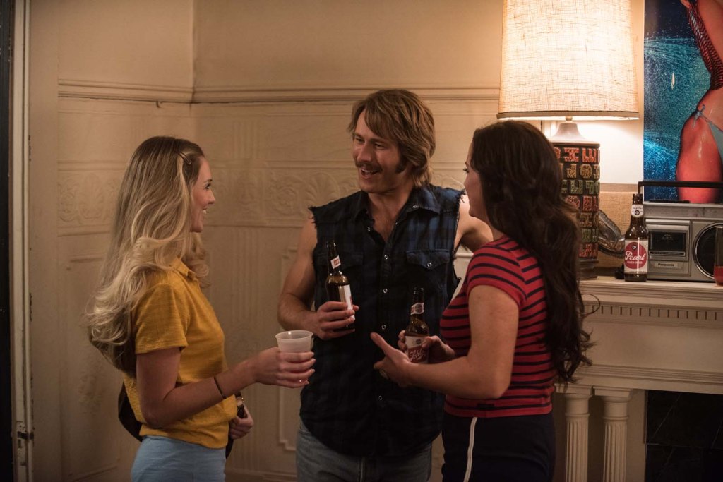Le récit est par ailleurs empreint de la nostalgie de cette époque des vinyles (comme Jake, Richard Linklater est entré à l’université en emportant avec lui sa collection de vinyles) et du sentiment de liberté de ces années universitaires, ou cohabitent des étudiants de condition sociale et de culture parfois très opposées et où tout reste encore possible et à écrire. Au début des années 80, le disco est encore bien présent, alors que commence à grandir le mouvement punk et que la musique country reste profondément ancrée dans la culture américaine. Jake, Flinnegan, Roper, Dale, Plummer, et les autres, allant de fête en fête, sont les témoins de cette époque dans laquelle Linklater évolue comme un insider (sous les traits de Jake dont on devine qu’il est très proche de l’étudiant qu’il était), jubilant de retrouver les sons et les ambiances de sa jeunesse. Entre les mains d’un autre réalisateur, un tel récit aurait pu être anecdotique ou pire, une farce lourdingue et épuisante. Dans Everybody Wants Some , on retrouve le même marqueur, la même valeur ajoutée que dans ses précédents films: l’acuité avec laquelle il traite des liens entre ses personnages et « l’humanité » qui émane d’eux. Dans un film au casting dominé par une bande de mecs dont l’objectif, durant ces trois jours précédant la rentrée, est de sortir avec des filles, picoler et démontrer son esprit de compétition, arriver à créer de l’empathie pour ces personnages, à les rendre « crédibles » y compris les plus barrés comme Jay Niles (fantastique Juston Street) est un sacré tour de force. Avec Everybody Wants Some, Richard Linklater réussit un home run pour nous offrir le voyage temporel le plus cool de l’année et on peut mettre un petit billet sur le fait qu’il fera décoller la carrière de plusieurs de ses acteurs, en particulier Juston Street et Glen Powell.