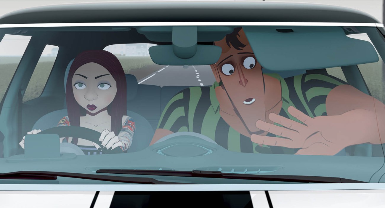Ce qui frappe le plus au premier regard est clairement le rythme effréné dont fait preuve la narration, assimilant le résultat à un gigantesque rollercoaster de 78 minutes qui ne perd pas de temps à installer ses enjeux et ses personnages. Il suffit ici d’un éblouissant générique de début pour poser les bases de la légende au cœur du récit, d’une introduction ultra-dynamique pour introduire à peu près tous les personnages, et de trois situations parfaitement écrites et exposées pour que les codes de la comédie parentale (avec rébellion et déboires en cascade) se mixent avec efficacité à ceux de l’aventure horrifique. Ça va donc vite. Très vite. Trop vite ? En un sens, la générosité du film l’emporte sans peine sur la sensation de le voir se précipiter dans sa narration. Non pas que le film évite de traiter son propos à double – voire triple – tête, mais on le sent quand même un peu trop gourmand, peu attentif à tous ses seconds rôles (et il y en a un paquet !) et trop exclusivement recourbé sur son trio de tête (un héros cornu, une sorcière à balai-skateboard, et un bôgoss à dents longues). Au vu d’une durée aussi courte, il est facile d’y voir là le gros défaut du film. Un défaut qui, pourtant, ne fait pas long feu devant le plaisir du voyage, entre des idées brillantes (les clins d’œil à Pierre Bachelet ou au clip Thriller de Michael Jackson font un sacré effet) et une animation optimale (le graphisme de la BD coule de source dans un style animé qui joue beaucoup sur les reliefs plats et les échelles de plan). De même que certaines idées assez géniales contribuent à épicer le voyage en intervenant au moment le plus opportun – mention spéciale à une représentation du diable par un écran qui crache des flammes !