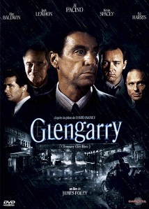 Comme le déplore Michel Ciment: pour juger du talent d’un réalisateur, on a souvent tendance à considérer l’ensemble de sa filmographie, plutôt que de retenir ses sommets. Comme s’il fallait donner une note moyenne à un réalisateur et qu’il vaudrait ainsi mieux réaliser 5 bons films que 2 chefs-d’œuvre et 3 navets. A ce compte, Brian de Palma dont la moyenne ne cesse de chuter depuis une vingtaine d’années, ferait bien de ranger sa caméra avant de finir par entrer dans la catégorie des tâcherons. James Foley est également un cas d’école. Comptant plus de films (très) moyens que de bons films dans sa filmographie, on ne peut pas dire qu’il jouisse d’une aura considérable. Pour être franc, nous pensions que l’excellent At Close Range était son sommet mais c’était sans compter sur l’un des sommets des années 90: Glengarry. Glengarry Glen Ross c’est tout d’abord un casting exceptionnel, multi oscarisé : Al Pacino (1 oscar), Jack Lemmon (2 oscars), Ed Harris (4 nominations aux oscars), Kevin Spacey (2 oscars), Alec Baldwin (1 nomination aux oscars) et Alan Arkin (1 oscar). C’est ensuite l’adaptation par David Mamet de sa pièce qui reçu le prix Pulitzer du meilleur drame en 1984.