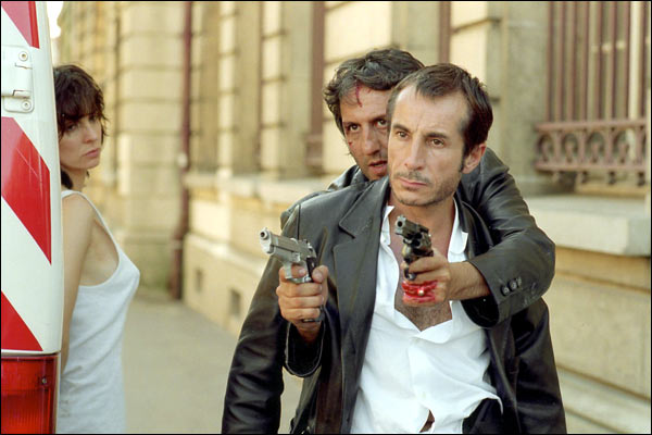 Or, si l’ambition est clairement là, Gangsters ploie parfois sous le poids de son désir d’en mettre plein la vue et le film a, à certaines occasions un peu de mal à cadrer la générosité d’un réalisateur qui ne parvient pas à éviter tous les scories d’un premier film. Vouloir à tout prix l’efficacité et relâcher l’étreinte pour permettre aux personnages de dépasser leur fonction, voilà la gageure que le film ne tient que partiellement, la faute aussi à un scénario au fil un peu trop ténu et qui aurait eu besoin d’une autre ampleur qui aurait pu lui donner l’occasion de développer certaines pistes qui ne sont du coup qu’évoquées. Malgré ces défauts, Gangsters c’est déjà du Marchal pur et dur. Les voyous comme les flics y sont « bigger than life », les mots dans leur bouche claquent comme des coups de fouet et chacun est campé par des gueules de cinéma fascinantes, pour beaucoup qui deviendront (ou sont déjà) des fidèles du cinéaste (Francis Renaud, Gérald Laroche, François Levental, Catherine Marchal, Guy Lecluysse, François-Régis Marchasson… ). Non seulement les acteurs sont excellents mais ils magnifient les mots d’Olivier Marchal qui confirme un talent hors pair de dialoguiste et un sens de la punchline définitive qui deviendra l’une de ses marques de fabrique. Mais le talent de scénariste de Marchal ne doit pas être l’arbre qui cache la forêt, car il démontre qu’il est aussi un réalisateur aux aptitudes indéniables pour filmer l’action avec un impact unique et qu’il sait mettre en place une atmosphère.