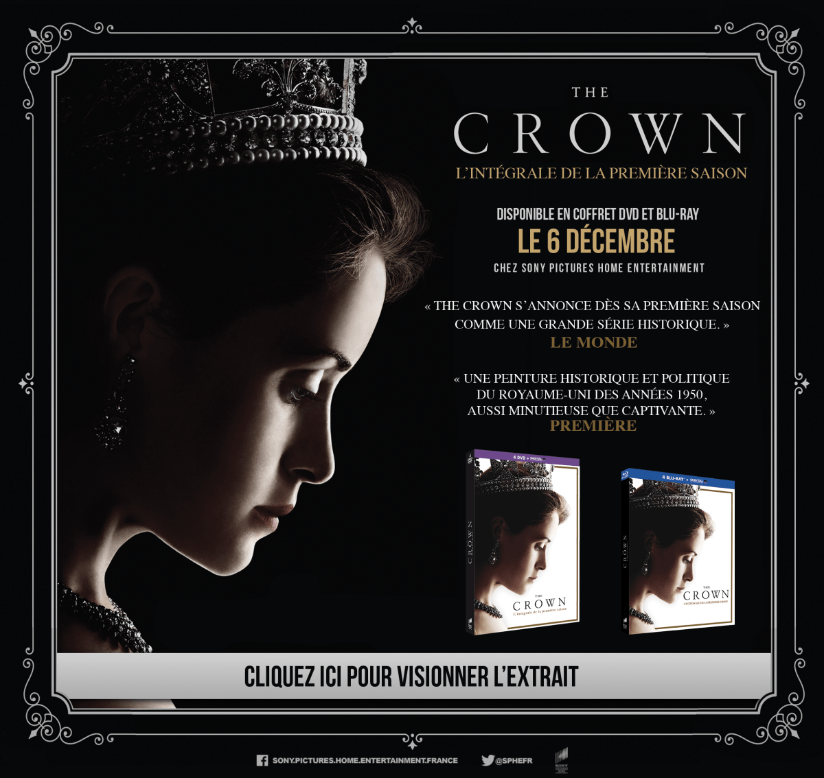Alors que la saison 2 arrivee sur Netflix, la saison 1 de The Crown est disponible en vidéo: La critique ici : https://leschroniquesdecliffhanger.com/2016/11/08/the-crown-critique-saison-1-game-of-trone/ Sony Pictures Home Entertainment