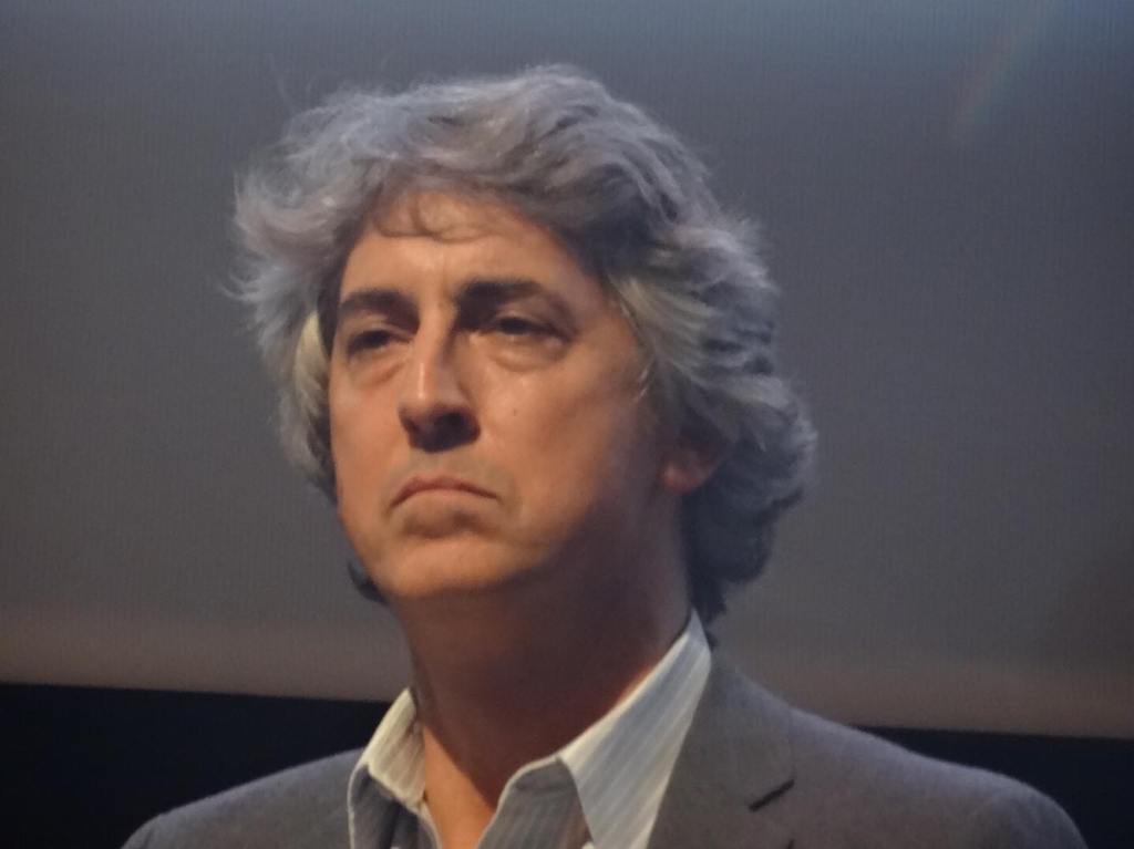 D’abord ça a été un processus très très long d’écriture. Le scénario de ce film… Il y a eu 6 ans entre Sideways et The descendants, et c’était un peu cette raison, parce que je voulais que ce film soit le film après Sideways, mais le scénario a pris tellement de temps, et après on a eu beaucoup de mal aussi à trouver des financements, c’était presque impossible d’en trouver. Vous pouvez me poser d’autres questions sur le scénario, vous pouvez me dire comment on a fait, et ceux parmi vous, les étudiants qui travaillent là-dessus, vous savez que c’est un travail très instinctif. On ne se dit pas « Tiens, comment va-t-on faire ça ? ». Avec la distance, je peux vous dire « on a fait de telle ou telle manière », mais vraiment c’est comme ça vient. La seule chose que je peux dire, et ce n’est pas une réponse complète à votre question : l’humour pour nous vient du fait de prendre un point de départ tout à fait absurde et on le traite de manière très sérieuse, et plus on est sérieux là-dessus, plus c’est drôle. Mais ce n’est pas une sorte d’humour qui vous fait éclater de rire, c’est un humour très intellectuel.