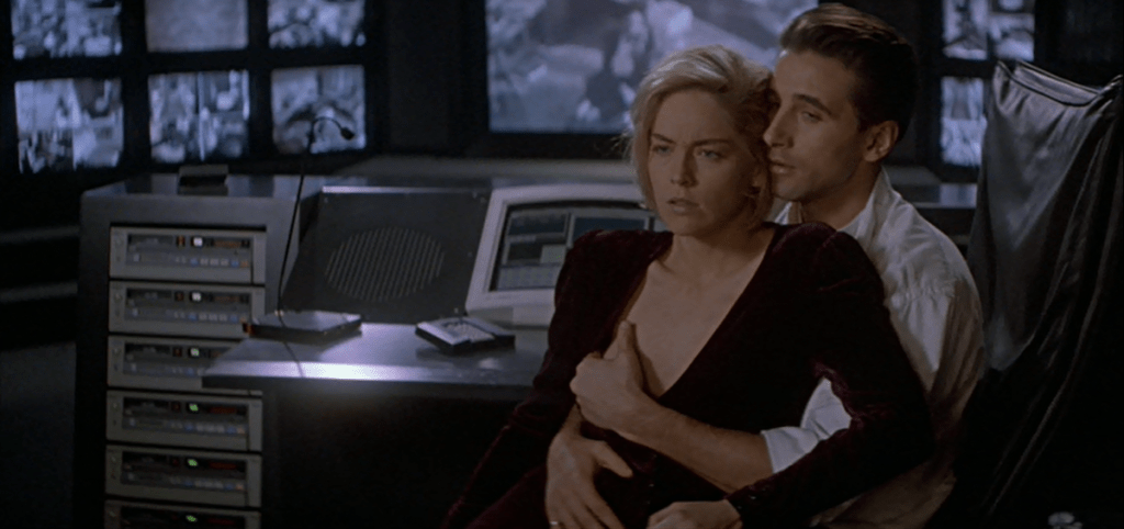 On en oublierait presque d’évoquer le film en lui-même, mais c’est surtout parce qu’il n’y a pas grand-chose à en dire. Sur la base d’un scénario censé travailler le thème du voyeurisme comme ersatz à la jouissance, Sliver ne propose qu’une idée centrale plus basique tu meurs : tout le monde observe tout le monde parce que tout le monde est voyeur. D’accord. Mais encore ? Grosso modo, l’action se limite à un immeuble high-tech dans lequel un inconnu – on devine très vite de qui il s’agit – a inondé chaque appartement de caméras de surveillance afin de laisser libre cours à ses pulsions voyeuristes. Il y a là une vraie idée de mise en scène, mais c’est hélas la seule : lorsqu’il cadre la multitude d’écrans vidéo qui trahissent l’intimité de tout l’immeuble, Noyce opte pour des plans subjectifs censés nous confronter à notre désir voyeuriste. Hélas, son filmage est si plat et si peu dynamique que l’idée finit par s’écrouler. On soulignera d’ailleurs que le brillant Time Code de Mike Figgis allait mille fois plus loin dans cette logique d’un « écran fragmenté » qui fouillerait l’intimité de plusieurs destins. La solution de contournement choisie sera mauvaise : Sharon Stone se retrouve avec un télescope qui lui donne vite envie d’épier les cochonneries de l’immeuble en face. Sauf qu’on ne voit rien, et que Stone elle-même, à force de jouer un personnage plus factuel que sensuel, semble avoir la tête ailleurs.