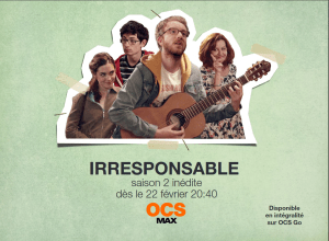 « On se sent bien devant Irresponsable comme avec une série doudou dans laquelle on peut se lover confortablement. C’est ce qui en fait le prix. Certes ce n’est pas une série parfaite, ce n’est pas un ovni totalement novateur, forcément certaines inspirations semblent évidentes (Judd Apatow, Woody Allen…), les enjeux dramatiques mettent un peu de temps à se mettre en place, mais elle fait souffler sur la fiction française un vent de fraicheur tellement agréable qu’on n’a qu’une envie. Vite les retrouver. » écrivions-nous en mai 2016 lors de la première saison d’Irresponsable, série créée par Frédéric Rosset, ex étudiant de la Femis et qui nous avait plus qu’agréablement surpris. S’il a fallu attendre un petit peu plus longtemps que ce que nous escomptions, la saison 2 de ce qui est devenu l’emblème de la série de comédie de 26 minutes fine et pétulante arrive enfin sur OCS. Avec toujours la même équipe pour présider à sa destinée: Frédéric Rosset bien sûr, Camille Rosset (co-scénariste), Stephen Cafiero (réalisateur) et son quatuor de comédiens principaux, Marie Kauffmann, Nathalie Cerda, Théo Fernandez et Sébastien Chassagne.