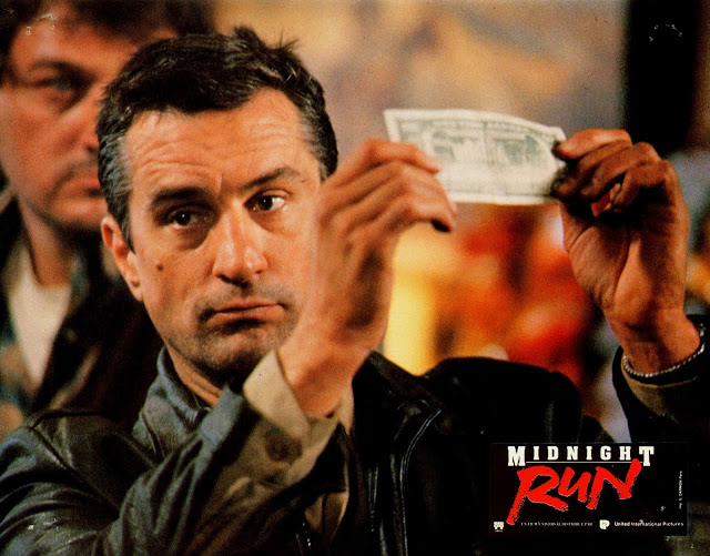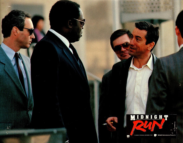 On l’a déjà dit, un des ingrédients fondamenteux d’un buddy movie réussi est l’alchimie tangible entre les deux acteurs principaux. C’est ici le cas, Robert De Niro et Charles Grodin constituent un duo éminemment sympathique et efficient, gagnant toujours en humanité au fil du récit. Les seconds couteaux qui les accompagnent ne sont pas en reste, s’avérant tous plus incroyables les uns que les autres, de John Ashton (déjà présent dans Le Flic de Beverly Hills et excellent ici en chasseur de primes rival) au regretté Dennis Farina (savoureux en mafieux vénère), en passant par Yaphet Kotto (très bon en agent du FBI chasseur constamment consterné et malmené par ses « proies ») et Joe Pantoliano (hilarant en patron de l’entreprise qui prête de l’argent à des clients pour payer leurs cautions judiciaire les laissant ainsi hors de détention). Opérant une direction d’acteurs sans faille – c’est là la touche du cinéaste – Martin Brest tire le meilleur de la complicité De Niro/Grodin, passant du registre comique à l’action en un clin d’œil et avec une sincérité généreuse. S’il est loin d’être révolutionnaire en terme de mise en scène, Midnight Run n’en demeure pas moins indéniablement « propre », avec des scènes d’action toujours lisibles et correctement troussées (la course-poursuite avec la ribambelle de voitures de flics en est un exemple probant), quelques plans bigrement jouissifs (Jack qui récupère la plaque d’Alonzo Mosely, l’hélicoptère qui explose…) et une composition de cadres sans aucune faute de goût. Sans prétention et avec expérience, Martin Brest, réputé pour son statut de protecteur d’acteurs et pour ses très nombreuses prises sur le tournage, occasionnant presque toujours un premier montage d’une durée ahurissante, livre un travail formel pleinement satisfaisant. De son côté, Danny Elfman, crédité comme compositeur de la bande originale, assure honorablement le job avec des morceaux blues agréables, toujours bien placés et ajustés aux images, et participant pour beaucoup à l’énergie rocambolesque du métrage.