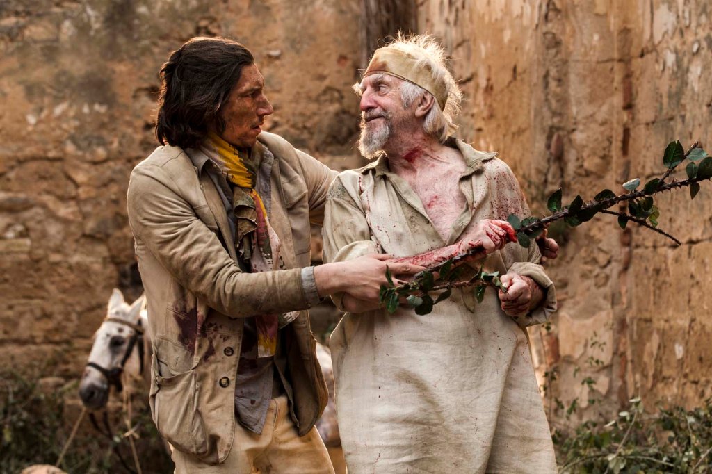 Il aura donc fallu vingt-cinq ans à Terry Gilliam pour qu’un rêve de cinéaste devienne enfin réalité, vingt-cinq ans de coups du sort, de renoncement, d’espoirs, de rêves puis de cauchemars avant que, ce qui finissait par ressembler à la plus grande Arlésienne de l’Histoire du Cinéma arrive enfin à voir le jour. Digne des plus grands suspenses, la sortie de L’Homme qui tua Don Quichotte fut sujet à caution jusqu’aux tous derniers instants. Projet initialement dévolu à Jean Rochefort (à qui le film est dédié tout comme à John Hurt) et à Johnny Depp, le tournage du film fut en 2000, le théâtre de catastrophes climatiques et du renoncement de Rochefort, la faute à une terrible hernie discale, des évènements relatés dans le documentaire Lost in la Mancha en 2002. Tout à son obsession pour le récit de Cervantes depuis 1989, Gilliam n’a jamais lâché et de soucis de production en obstacles insurmontables, miraculeusement, le film a enfin le mérite d’exister. Devant la caméra du réalisateur, son acteur de Brazil et des Aventures du Baron de Munchausen Jonathan Pryce et Adam Driver dans les rôles principaux, entourés d’Olga Kurylenko, Joana Ribeiro, Stellan Skarsgård, Rossy de Palma et Sergi Lopez. Désormais que L’Homme qui tua Don Quichotte est là, livré au public et une fois la passion retombée, l’excitation de la découverte atténuée et les espoirs douchés ou sublimés, que reste t-il de ce film qui quoi qu’il en soit est avant tout une aventure humaine et artistique hors du commun?
