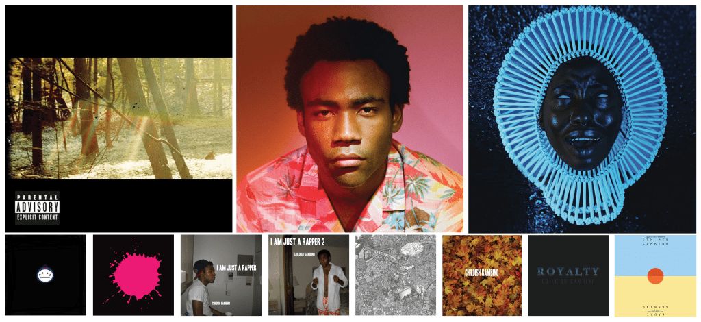 Ce side-project, c’est évidemment Childish Gambino. C’est à la fac qu’il développe également un alias electro MC D, qui plus tard se transformera en mcDJ, avec lequel il fera pléthores de remixes et de compos electros, qui le guideront probablement jusqu’à Childish Gambino. Donald Glover a toujours continué à rapper depuis la fac, mais c’est 2008 qu’il sort la mixtape Sick Boi, suivie les années suivantes par Poindexter, I Am Just A Rapper 1 & 2 et Culdesac. Cinq mixtapes qui définiront un style particulier et aiguiseront son sens du flow, de la rime, de sa personna. Son public évolue au fur et à mesure que sa notoriété d’acteur grandit aussi, et son côté nerd s’estompe assez pour faire place à un côté branché auquel il met un petit twist à chaque projet suivant. En 2011, il sort EP, porte d’entrée avant Camp, son premier album, produit en collaboration avec le compositeur de Community, Ludwig Göransson – qui depuis a définit le son du Wakanda…