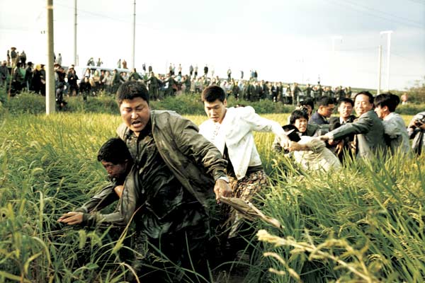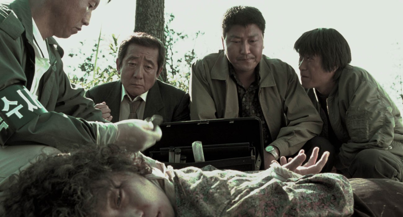 Ho utilise pour raconter son histoire le classique américain du buddy movie, genre qui connut son essor dans les années 80 et dont L’Arme Fatale deviendra l’étendard. Cette idée du couple de flic jamais raccord, à l’opposé dans leur mode de vie est repris ici avec brio du fait de l’alchimie créée entre ce flic citadin (Kim Sang-Kyeong) et ce flic rural (Song Kang-Ho) n’employant pas les mêmes méthodes. Comme souvent dans le cinéma coréen, le réalisateur utilise le burlesque pour caractériser ces personnages qui passent la plupart du temps pour des pitres ne permettant pas à l’enquête d’avancer. C’est un vrai risque qui y est pris car cela pourrait nous faire définitivement sortir de cette histoire malsaine et captivante. C’est sans compter sur la vraie qualité des acteurs et encore une fois de la mise en scène du réalisateur coréen. Dans des scènes absolument bouleversantes, il arrive à renouer le fil de cette tragédie policière notamment avec la scène du meurtre de la collégienne ou encore la scène de fin qui se joue sur un passage à niveau. Comme il le prouvera ultérieurement, Ho est un vraie génie lorsqu’il s’agit de l’expression des sentiments. Okja sorti l’année dernière en est le parfait exemple.