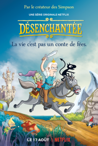 Après l’excellent BoJack Horseman, série animée ultra autoréférentielle sur les déboires d’un acteur has been, suivi par Troll Hunters en 2016, puis Big Mouth en 2017 (énorme succès critique aux États-Unis), voici que Désenchantée arrive sur Netflix. La nouvelle série de Matt Groening, créateur des Simpsons et produite par Groening, Patric M. Verrone (Futurama), Reid Harrison (Danger Mouse) et Josh Weinstein (Gravity Falls), collaborateurs de longue date, raconte les aventures d’une princesse pas comme les autres, héritière du royaume de Dreamland, qui va se retrouver, comme les chevaliers de la table ronde, dans une quête itinérante au cours de laquelle elle rencontrera toutes sortes de créatures. Le casting est de premier ordre : Abby Jacobson de Broad City prête sa voix à la princesse Bean, Eric André offre la sienne au démon Luci et Nat Faxon, à l’elfe Elfo. Le reste de la distribution comprend Jeny Batten, Matt Berry, Tress McNeille et Maurice LaMarche, entre autres, pour un résultat très efficace, portant la marque très distincte de Groenig. Netflix est derrière le projet à cent pour cent, puisque la compagnie commande deux saisons d’un coup, preuve que ceux qui prennent les décisions du haut de la tour d’acier de la plate-forme de streaming, ont toute confiance en la série (même si rares sont les séries Netflix à ne pas connaitre deux saisons NDLR)