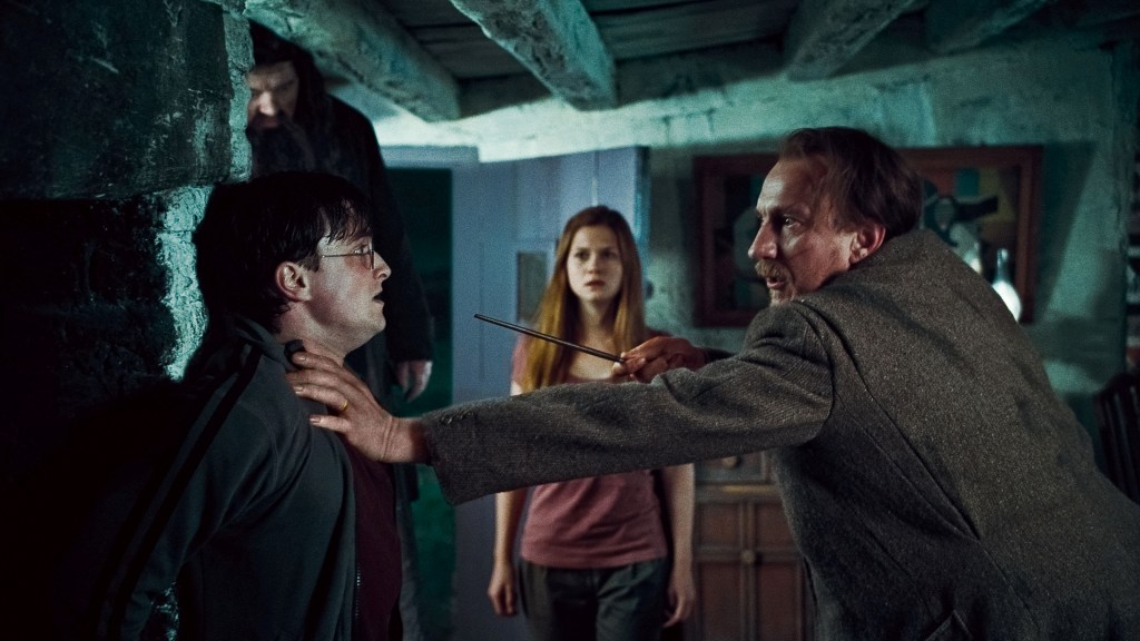 À côté de ça, on a l’espoir que représente le mariage du couple Bill Weasley (Domhnall Gleeson) et Fleur Delacour (Clémence Poésy) ainsi que l’enfant qu’attendent Remus Lupin (le toujours excellent David Thewlis) et Tonks (Natalia Tena). Mais celui-ci est mince. L’Ordre du Phénix est toujours là pour protéger Harry, parfois au risque de leur vie – le compteur des morts va s’affoler… Après les décès de Cedric, Sirius et Dumbledore, la fin de la saga s’annonce en effet funeste, les moments d’émotion pure et les gros pincements au cœur se succédant ; et le temps est compté puisqu’on en apprend davantage sur le dessein de Voldemort. Suite à une interaction avec le père de Luna Lovegood (interprété par Rhys Ifans, toujours au top), et dans une magnifique scène animée, on apprend l’existence d’un certain « Contes des Trois Frères », faisant état de trois artefacts qui, ensemble, pourraient donner à Voldemort un pouvoir inarrêtable : les Reliques de la Mort. Dans l’épilogue, évidemment frustrant, et avec des plans d’une grande beauté, on nous montre l’urgence et le côté irrémédiable de la situation qui sera celle du prochain et dernier film de la saga.