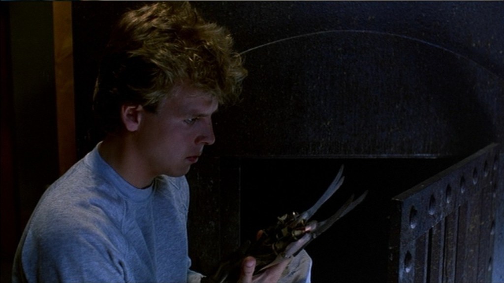 Ce nouvel opus consacré au croquemitaine griffu Freddy Krueger est réalisé par Jack Sholder, qui sort un peu de nulle part. Le projet fut lancé juste après la sortie du premier, et il aura fallu un an pour que la suite soit écrite, tournée et diffusée. Il met en scène la famille Walsh, parfaite petite famille américaine qui s’inscrit complètement dans les clichés de pub télévisées (le père qui lit le journal, la mère qui cuisine le petit-déjeuner, et la petite fille fouillant dans sa boîte de céréales). Alors que cette jolie famille s’installe dans une maison sur Elm Street (celle des Thompsons, lieu de l’action du premier opus), Jesse, l’aîné, est victime de violents cauchemars. Le film s’ouvre sur un bus scolaire. Deux filles lancent des regards et des critiques moqueuses à l’égard du jeune homme. Puis, alors que le bus devient incontrôlable, le conducteur se révèle être Freddy. Il sort de la route, et termine au dessus d’une immense crevasse dans laquelle le bus menace de tomber. Jesse se réveille en sursaut, trempé de sueur. Bref, jusque là, on connaît la chanson. Mais il s’avérera que Freddy ne compte pas le tuer, loin de là : il souhaite utiliser l’enveloppe corporelle de Jesse. Un Freddy qui lui ordonnera de « tuer pour lui », en lui tendant le mythique gant griffu dans un de ces nombreux rêves, toujours dans une chaufferie car que serait Freddy sans la classique chaufferie…