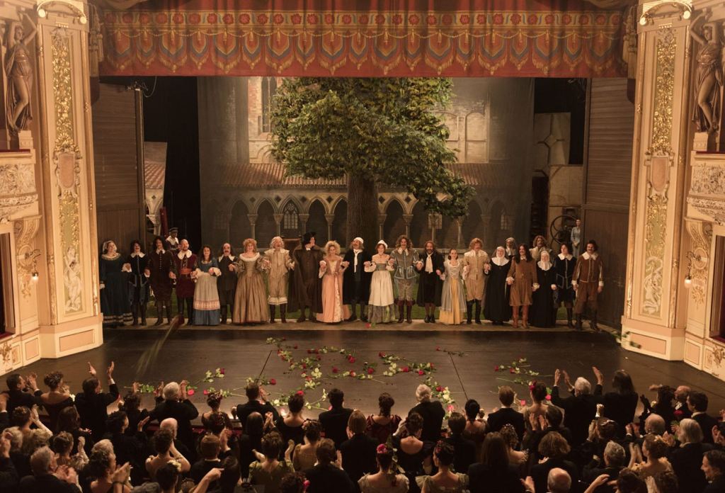 Sans contenu passionnant, sans éléments de comédie forts ou rebondissements prenants, sans dialogues impeccables à la musicalité parfaitement respectée par des interprétations au cordeau, la réalisation, aussi réussie soit t-elle, pourrait être d’une vacuité sans commune mesure. Il n’en est rien fort heureusement, tout fonctionne avec la grâce d’un ballet où l’harmonie des couleurs et la parfaite coordination des comédiens donne tout son sens au projet. D’une puissance atmosphérique saisissante, grâce à une sublime reconstitution et à l’élégance des décors et des costumes, Edmond offre une plongée dans un Paris d’antan qui nous enchante. C’est un film en mouvement, qui fait vibrer par les émotions et les rires qu’il provoque avec un sens du rythme impeccable. Thomas Solivérès (A toute épreuve, Sales Gosses...) y trouve le meilleur rôle de sa jeune carrière, en formidable Rostand, inquiet, tendre et romantique qui parvient parfaitement à incarner la passion et comment l’amour, la poésie et l’inspiration peuvent saisir un homme et lui faire grimper des cimes qui lui semblaient insurmontables. Autour de lui, c’est une troupe remarquable qui est réunie reconstituant par là même tout l’esprit du théâtre qui règne sur le récit: Il faudrait les citer tous mais la liste n’en finirait pas car, que ce soit les acteurs chevronnés (Olivier Gourmet, Mathilde Seigner Clémentine Célarié, Simon Abkarian, Jean-Michel Martial, Dominique Pinon…) les jeunes comédiens (Tom Leeb, Lucie Boujenah, Alice de Lencquesaing, Igor Gotesman…) ou Michalik lui-même (et entre autres son complice de la série Kaboul Kitchen et co-producteur, Benjamin Bellecour), tous, des apparitions les plus fugaces aux rôles plus consistants, ont des choses à jouer et des émotions à véhiculer. On pourrait faire la fine bouche et dire que le film manque de ceci ou de cela mais il serait hypocrite de vouloir tempérer notre emballement tant il nous a emporté dans son sillage. Brillant et séduisant, Edmond était un triomphe théâtral, et l’adaptation cinéma est un exemple de virtuosité à la mise en scène aérienne où l’humour, l’émotion et le romanesque se répondent grâce à une distribution impeccable. Entre Rappeneau et De Broca, la patte Michalik en impose d’emblée.