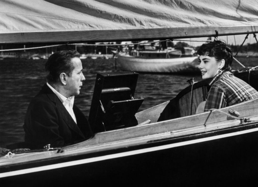 Les acteurs sont fabuleux. Audrey Hepburn sortait tout juste du succès de Vacances romaines de William Wyler (1952), son premier grand rôle qui lui valut son Oscar de la Meilleure Actrice, à tout juste 24 ans. Elle interprète le rôle-titre, celui d’une jeune femme (britannique) qui essaye de trouver sa place dans le monde et la société de la côté-est américaine et qui est en décalage avec son milieu d’origine, comme l’explique si bien le personnage de son père chauffeur « elle n’est pas à sa place, ni dans un château, ni dans un garage. » L’actrice y est merveilleuse de grâce, d’élégance, et de sincérité dans son jeu. Et quel bonheur de l’entendre parler français (avec un très bon accent, puisqu’elle parlait couramment la langue de Molière, parmi d’autres) et fredonner La vie en rose ! Elle retravaillera par la suite avec le réalisateur pour le magnifique film Ariane (1957) qui se passe à Paris, comme mentionné ci-dessus. Après Boulevard du crépuscule (1950) et Stalag 17 (1953, qui lui vaut son Oscar du Meilleur Acteur), Wilder retrouve pour la troisième fois l’incroyable William Holden : il campe David Larrabee, un coureur de jupons qu’on ne peut détester car le personnage est moins égoïste et stupide que le spectateur pourrait penser au premier abord. Audrey Hepburn retrouvera son partenaire William Holden dans un autre merveilleux film que l’on vous recommande fortement, Deux têtes folles (1964) de Richard Quine, remake du film français La fête à Henriette de Julien Duvivier (1952), sur deux scénaristes qui imaginent et écrivent une histoire en partant dans des directions différentes. Quant à Humphrey Bogart, il a l’air de s’embêter un peu parfois (mais le tournage a été difficile pour lui car il trouvait qu’il avait été mal choisi pour le rôle de Linus, au départ prévu pour Cary Grant), cependant il apporte beaucoup d’amertume et d’émotion à son personnage de Linus Larrabee, célibataire endurci et excellent hommes d’affaires. Il est d’ailleurs intéressant de noter que Linus est en quelque sorte une version plus jeune du personnage de C.R. « Mac » MacNamarra (James Cagney) dans un autre film de Wilder, Un, deux, trois (1961), un redoutable chef d’entreprise, car les deux hommes donnent toujours leurs consignes (souvent au téléphone ou par le biais d’un interphone) en commençant par « next ! ». On se prend à rêver que McNamarra est resté coincé dans son cynisme et son ambition alors que Linus Larrabee se laisse submerger par une émotion qu’il a voulu enterrer.