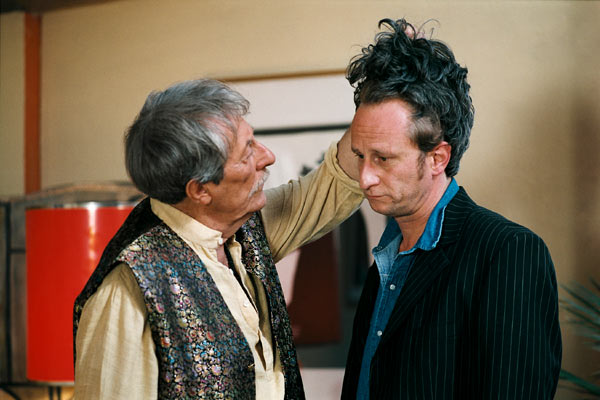 Si l’on voulait rester simple, on pourrait dire que c’est l’histoire de deux fugueurs qui débarquent sur une île peuplée de gens bizarres… Quoique non, ce n’est pas vraiment ça… On pourrait dire aussi que c’est un film dans le film, sauf qu’on aurait un mal de chien à en décrire la logique – celle-ci n’arrête pas de changer… On pourrait juste se contenter de dire que c’est un film réalisé par Edouard Baer, et là, tout de suite, les choses seraient un peu plus claires. Ceux qui raffolaient de ses absurdités barrées sur Canal+ ou de ses happenings théâtraux (Le Grand Mezze) gagneront ici à se sentir perdus. Et donc, késako, Akoibon ? Ni plus ni moins qu’un film impossible à étiqueter, un vaste mélange des genres qui ferait passer La Bostella – précédent film réalisé par Baer – pour un film choral de Danièle Thompson, un délire faussement nonsensique qui pousse très loin les curseurs de l’absurdité d’une situation bidon pour construire une réflexion sur la place de l’acteur au cinéma. Grosso modo, le début est simple : un petit escroc nommé Nader (Nader Boussandel) doit se rendre sur une île pour kidnapper son propriétaire, un dénommé Chris Barnes (Jean Rochefort), dont l’une des deux filles, Betsy (Marie Denarnaud), est convoitée par un certain Daniel (Edouard Baer) qui accompagne Nader sur l’île, tandis que l’autre fille de Barnes, Barbara (Chiara Mastroianni), s’ennuie ferme avec son gros beauf de mari (Benoît Poelvoorde), le tout clarifié autant que possible par un narrateur (Gilles Gaston-Dreyfus) qui dégagera fissa du film sous l’effet d’un coup de feu… Oui, certes, tout ça n’a pas l’air très simple. Mais à l’écran, ça l’est… Enfin non, pas dans les faits, mais plutôt dans l’effet…
