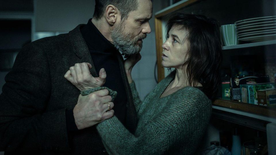 Autant vous le dire tout de suite, malgré l’amour que nous portons à Jim, et celui que vous lui portez peut-être aussi, nous vous déconseillons vivement Dark Murders qui n’est ni plus ni moins que l’éloge du vide. C’est très simple, si le film d’Alexandros Avranas était une localité, il concurrencerait sans mal Grenoble pour l’obtention du titre de la ville la plus plate de France. La raison qui a motivé tout ce beau monde à s’échouer dans cette léthargie générale nous échappe, celle de Jim en tête de gondole. Dark Murders met en scène Jim Carrey dans le rôle de Tadek, un flic polonais blasé et délavé qui traverse sa vie de famille tel un automate spectral dans une Pologne si vide, que le film pourrait tout aussi bien se dérouler à Roubaix sans que nous constations de différence notable. Persuadé qu’un écrivain est impliqué dans un meurtre resté jusqu’à présent non élucidé, Tadek s’engage dans un étrange duel avec ledit écrivain (qui a décrit un homicide identique dans l’un de ses romans) afin de prouver sa culpabilité. Inspiré de l’histoire vraie de Bala Krystian (qui croupit actuellement en prison pour les raisons évoquées ci-dessus) et plus précisément d’un article du The New Yorker intitulé True Crime – A postmodern murder mystery*, paru en 2008, le film étonne (dans le mauvais sens du terme) car il avait suffisamment de substance pour raconter quelque chose de piquant et constructif. La véritable histoire est bien plus passionnante que le rendu final et nous nous étonnons d’ailleurs qu’elle soit à ce point sous-exploitée dans Dark Murders. Ajoutons à cela que le scénario n’a aucun sens : comment pourrait-il en avoir puisque l’écriture de ses personnages n’a ni queue, ni tête ?