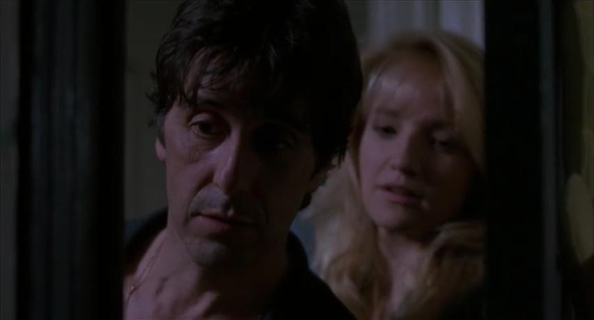 Dans un mouvement de balancier continu qui nourrit chacun de ces registres, l’intime et l’enquête, le drame et le thriller sont étroitement imbriqués et se répondent l’un à l’autre, par le jeu de dialogues ciselés et de la performance d’Al Pacino qui porte dans son regard tout ce qui brûle à l’intérieur dans son personnage. Frank Keller est un détective qui arrive en bout de course aussi bien dans sa vie personnelle que professionnelle. Séparé, solitaire, rattrapé et usé par le poids des années et de son métier, il n’en est pas moins roué et charmant, aussi implacable avec les criminels que sensible au charme vénéneux de Helen Kruger. Al Pacino parvient à nous faire ressentir toute les failles de son personnage et comprendre ce contre quoi il doit alors lutter quand son attirance pour Helen lui fait prendre des risques inconsidérés pour lui, comme pour l’enquête en cours et donc les potentielles futures victimes de ce mystérieux tueur. Le jeu de Pacino est aussi minimaliste dans ce rôle qu’il était expressionniste dans Scarface. Tout passe par son regard, sa posture, sa démarche, par une somme de petits détails qui composent le personnage de l’intérieur.