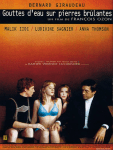Les sales gosses qui saccagent tout, ça aide en général à secouer ce grand cocotier encadré et emmuré qu’on appelle le cinéma français. Le plus triste, c’est quand ils finissent par ranger leur chambre et rentrer dans le rang. On ne vise pas uniquement François Ozon, mais tout de même : après un début de carrière qui faisait écho aux premières années provocatrices d’un grand cinéaste issu du pays des tapas (Pedro Almodovar, pour ne pas le citer), c’est peu dire que le bonhomme aura roulé sa bosse dans un certain auteurisme à la française, cadré et contrôlé, à contre-courant de cette agitation subversive qui lui faisait si bien porter son nom de famille – si l’on met de côté un Amant double mal-aimé que l’on persiste à défendre bec et ongles. Il suffit de revoir ses trois premières propositions de cinéma pour en prendre le pouls : hilarité totale devant un Sitcom transformé en jeu de massacre des familles bourgeoises et conservatrices (avec un trait volontairement appuyé), terreur viscérale devant des Amants Criminels reliant la cruauté du fait divers à celle – plus perverse – du conte de fées, haussements de sourcil devant cette adaptation d’une pièce de jeunesse de Fassbinder qui porte le nom de Gouttes d’eau sur pierres brûlantes. Ce troisième long-métrage, justement, il faut le dire, n’est pas facile d’accès. Se forger une opinion claire et nette à son sujet n’est pas simple. Parce qu’il est conceptuel – huis clos anxiogène, précis d’absurdité, mélo minimaliste, scénographie théâtrale. Parce qu’il dérange à peine – à part ceux que la vue d’un organe sexuel et l’écoute d’un râle de jouissance choqueraient encore. Parce qu’il amuse autant qu’il exaspère – il y a de quoi dire.