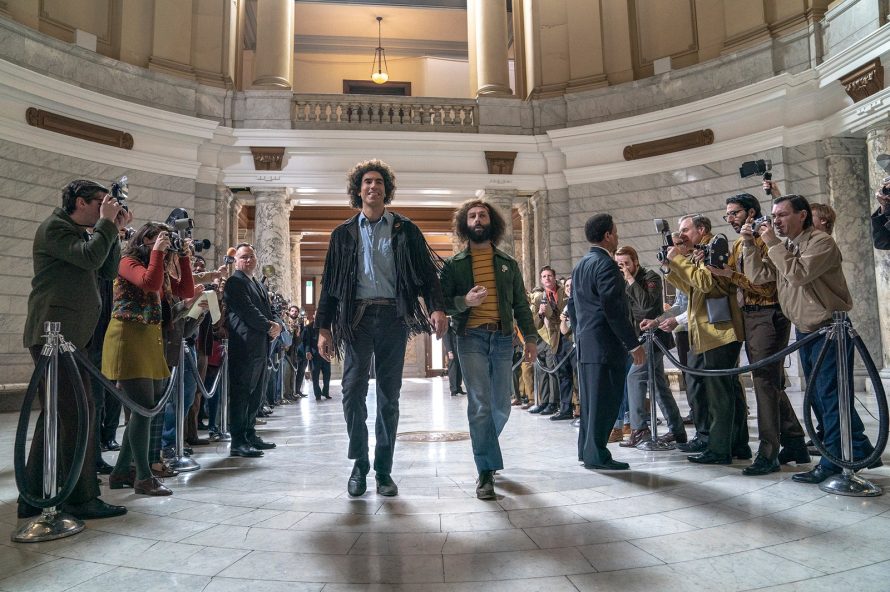 Et cette question est abordée dans le film par la dualité créée par Abbie Hoffman et Tom Hayden, rassemblés par leurs objectifs pacifistes, mais séparés par leur vision de cette révolution qui devrait (ou ne devrait pas) exploser, par leurs parcours sociaux et par leurs idéologies politiques. En traitant ce procès de la sorte, Sorkin adapte l’histoire en la focalisant sur ce combat féroce que ces militants entament contre un système inflexible qu’ils tentent chacun à leur manière de changer. Pendant plus de 2 heures, on suit de l’intérieur ce procès terrible d’injustices et d’impartialité, qui voit le Juge troquer son professionnalisme contre un favoritisme envers le procureur.