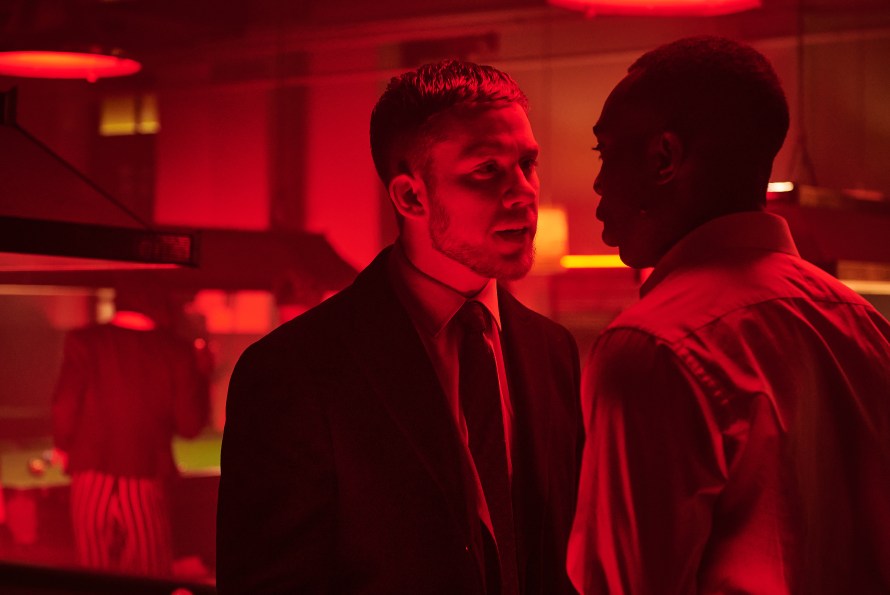 C’est un vrai travail collaboratif. En fait, on a une writer’s room, c’est-à-dire qu’on a plusieurs auteurs. Gareth, pendant que moi je préparais, lui, était déjà en tournage de l’épisode (..), non il finissait l’épisode 1, et il attaquait l’épisode 5 et il faisait les scènes d’action des épisodes 2,3 et 4 et moi, j’étais en prépa et donc à un moment donné je prends le script, je voyais ce qu’il tournait, j’avais les scénarios des autres épisodes mais à un moment donné, pendant ma prépa, je leur disais, tiens-là, au lieu qu’elle soit attachée avec des cordes dans la cave pour l’épisode 6, qu’est-ce que vous en pensez si on fait comme ça? C’est ce genre de choses et en fait on discute de ce qu’on peut faire, on discute de la trajectoire des personnages au sein du bloc en lui-même et même essayer de trouver une trajectoire pour chaque perso parce que pour moi c’est plus simple à la mise en scène et à la direction d’acteurs de partir d’un point A et d’arriver à un point B. Donc pour moi, mes 3 épisodes parlent de l’émancipation de Sean Wallace (Joe Cole) par rapport à sa mère et qui finalement réalise qu’il a été trahi par sa propre famille, on parle d’Ed Dumani (Lucian Msamati), donc c’était important d’avoir, je dirais, une sorte de ligne claire sur ce personnage-là, sur le personnage de Marian (Michelle Fairley) et ensuite de récupérer tous les personnages secondaires que sont Luan (Orli Shuka) et Lale (Narges Rashidi), là où on les a laissé avant l’épisode 5 qui est une parenthèse dans la série pour avoir une continuité sur ce qu’on raconte mais comme je le disais, ils sont secondaires, ils sont en filigrane derrière et il fallait leur donner leur petit morceau de bravoure, c’est-à dire que Luan, je conclus quelque chose avec lui dans l’épisode 8, de manière assez frontale…