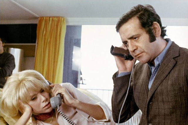 Soyons clairs, le scénario vaut moins pour son pitch que pour son délicieux étalage de dérision punchy, mitonné aux petits oignons par un Blier qui n’avait même pas encore tourné Les Valseuses. A première vue, pourtant, tout le monde semble sinon bien dans ses bottes, en tout cas fidèle à son image. Du côté des stars, Jean Yanne incarne de nouveau le bougon au grand cœur (du genre à ne pas mâcher ses mots), Mireille Darc irradie en salope glamour (du genre à faire exploser le mercure) et Michel Constantin singe le tueur en mode (du genre « ours mal léché »). Autour d’eux, Venantino Venantini et Daniel Prévost jouent les larbins mal intentionnés, Nanni Loy ressemble comme deux gouttes d’eau à Jean-Luc Mélenchon (en moins râleur et en plus drôle), et même Coluche – à l’époque totalement inconnu – fait ici une petite apparition pépère dans un rôle de barman. Mais il y a des éléments qui élèvent ce petit polar marrant au rang de méga-plaisir plus culte tu meurs.