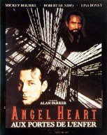 Chacune de leurs scènes électrisent le film tant il s’en dégage quelque chose qui dépasse le récit et ce qui se joue alors comme rapport de force entre leur personnage. C’est la rencontre de deux acteurs au sommet qui se jaugent et se poussent vers l’excellence, la confrontation entre le champion en titre et son challenger le plus insolent, sûr de lui, qui n’a aucune forme de respect pour son statut et entend prouver qu’il est le meilleur. De Niro a peu de minutes à l’écran mais n’en gaspille pas une seule, habitant jusqu’au bout des ongles, avec un grand souci du détail (il a lui même choisi la canne hors de prix de son personnage et imposé son achat à la production) ce mystérieux homme d’affaires, au regard reptilien. Ses apparitions rythment le film, instillent le doute puis le malaise et le font glisser un peu plus vers le surnaturel / l’horreur. Par rapport à un film noir classique dans lequel la figure de la femme fatale et centrale oriente le récit, ici c’est vraiment celle entre le détective et son commanditaire qui donne le « la ». Ce n’est pas une femme qui vient se mettre entre eux , qui motive l’un ou l’autre mais des desseins bien plus sombres dont la révélation, pour le coup, donnera plus de sens au rôle jusque là assez secondaire et dispensable dévolu à Lisa Bonnet. Angel Heart gagne ainsi autant en noirceur qu’en intérêt au fil de la révélation de la vraie nature de chacun et l’écrin conçu par Alan Parker et Michael Seresin (son fidèle directeur de la photographie) de paraître moins « artificiellement stylisé » pour peu qu’on ait pu émettre cette réserve. Les années auront donc aussi fait leur office et font d’Angel Heart un classique qui vaudrait d’être revu rien que pour l’une des confrontations les plus excitantes que l’on puisse trouver entre deux immenses acteurs.