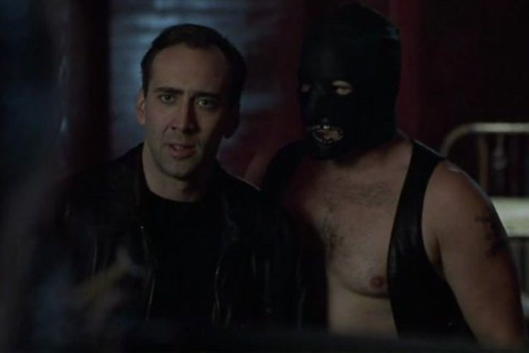 Quand Nicolas Cage tourne 8MM il est au sommet de son star power , il sort après un oscar du meilleur acteur pour Leaving Las Vegas d’une incroyable série de succès Rock , Les ailes de l’enfer, Volte/face même si elle vient de s’interrompre avec le Snake Eyes de De Palma mais déjà on sent les prémisses de ce qu’il va devenir par la suite, un acteur qui évolue dans sa propre dimension (il y sert ici quelques répliques hallucinées qui plairont à ses fans) et va se perdre dans des films de plus en plus médiocres. Un an avant sa révélation au grand public dans Gladiator, Joaquin Phoenix est remarquable dans le rôle de Max California guide de Cage dans le monde de la dépravation, leur duo fonctionne bien et il apporte au personnage une énergie nerveuse qui évoque le personnage de Dustin Hoffman dans Macadam Cowboy. Paradoxalement alors que 8MM se veut l’opposé de ses Batman, les antagonistes du film sont finalement aussi invraisemblables que les super-vilains qu’affrontent le caped crusader et comme dans ses superproductions sont incarnés par d’excellents comédiens qui en profitent pour cabotiner. C’est un des derniers rôles secondaires au cinéma de James Gandolfini avant qu’il ne change de dimension avec la série les Sopranos et il quitte l’univers des ordures dans lesquels on le cantonnait à l’époque avec son personnage sans doute le plus abominable, Eddie Poole un petit producteur de porno particulièrement sordide, sa dernière confrontation avec Cage est un duel de surjeu réjouissant pour le spectateur. Mais c’est sans doute à Peter Stormare (Fargo , Armageddon) que revient la palme du surjeu dans le rôle de l’étrange réalisateur de bondage-porno Dino Velvet. Autre habitué des rôles peu recommandables, Anthony Heald l’inoubliable Dr. Frederick Chilton du Silence des Agneaux est parfait de veulerie en avocat véreux dont on imagine sans peine qu’il n’est pas dérangé par les demandes les plus dépravées de ses riches clients. Si, on l’a dit, le travail d’Andrew Kevin Walker n’a pas la portée de celui de Se7en il parvient à créer dans 8MM une figure du mal réellement marquante dans le personnage de Machine un colosse masqué de cuir qui viole et torture des femmes sous la caméra de Dino Velvet, aussi mémorable sans doute que John Doe. Ce n’est pourtant pas son aspect visuel qui donne à Machine sa spécificité mais plutôt le visage qui se cache sous sa cagoule de cuir non pas une faciès défiguré à la Jason Voorhees mais celui d’un homme chauve à lunettes nommé George, un homme ordinaire dont le sadisme ne trouve pas ses racines dans quelques traumas de l’enfance, juste un homme qui tue simplement parce qu’il aime ça. Si il est peu probable de croiser un tueur maniaque comme Jason ou un psychopathe à l’intelligence supérieure comme John Doe ou Lecter, chacun peut croiser sans le savoir le mal ordinaire qu’incarne Machine, celui qui s’est exprimé tant de fois dans l’Histoire, chez les bourreaux nazis en particulier. Plus de vingt ans après sa sortie loin des attentes et des polémiques 8MM peut-être apprécié pour ce qu’il est une bonne série B de studio un peu racoleuse mais visuellement soignée, avec des dialogues bien tournés et servie par une brochette d’acteurs talentueux. On a déjà vu bien pire.