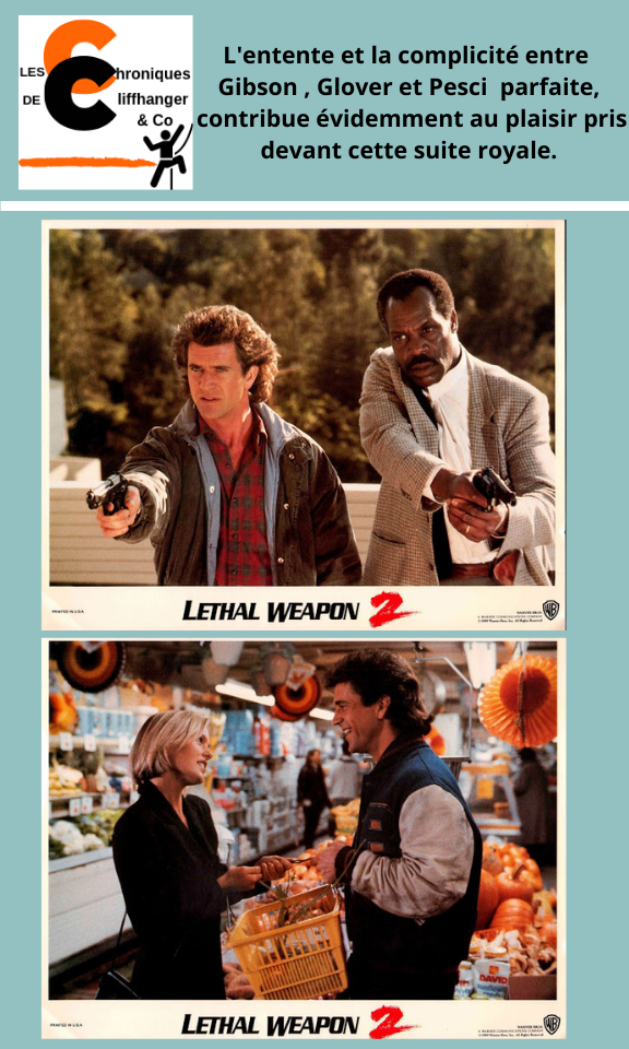 Le synopsis: Le duo improbable de policiers est de retour ! Martin Riggs et Roger Murtaugh doivent protéger un ancien bandit qui a accepté de témoigner pour faire arrêter des dealers. Au fil de l’enquête et grâce aux renseignements de leur source, une piste les mène jusqu’au consulat d’Afrique du Sud où, un fois encore, leurs méthodes peu conventionnelles risquent de déplaire…