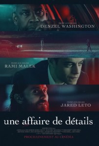 Le jeu moqueur de Jared Leto donne à Une affaire de détails ses rares moments de trouble faisant planer le doute sur la vraie nature de Sparma, cerveau criminel responsable non seulement des meurtres actuels mais aussi du carnage qui tourmente la conscience de Deke depuis des années ou cosplayer fanboy de serial-killer ? Washington apporte sa gravité et sa nuance habituelles au rôle de Deke, sa posture voûtée et son physique lourd suggèrent à la fois le fardeau émotionnel et psychologique qu’il endosse et la rage frustrée qu’il tente de contenir. Il y a une grande tristesse et un désespoir dans la façon dont Washington se déplace, y compris dans ces moments où il se précipite dans l’action ou laisse sa fureur réprimée prendre le dessus. Il est aussi charismatique que jamais et aussi émouvant que possible même si le tourment intérieur du personnage est trop ostentatoire pour être vraiment authentique. La meilleure scène du film réunit d’ailleurs les deux comédiens dans une séquence dans laquelle Deke suit Sparma sur une scène de crime aboutissant à un face à face entre les deux hommes. Si Une affaire de détails offre des personnages suffisamment animés par d’excellents comédiens et des développements de l’intrigue qui peuvent être qualifiés de « rebondissements », son final repose sur une prise de décision invraisemblable de la part d’un personnage totalement en contradiction avec son comportement jusqu’alors qu’il devient impossible d’adhérer au dénouement de l’intrigue. Déconnexion renforcée par un climax qui fait tout pour rappeler à nouveau Se7en en termes de cadre, de situation et de menaces potentielles. En conclusion malgré d’excellents comédiens, une belle atmosphère grâce à la photographie vibrante signée John Schwartzman (Armageddon, Jurassic World) Une affaire de détails qui aurait été jadis un thriller de studio prestigieux apparait comme une copie en DTV du classique de Fincher.