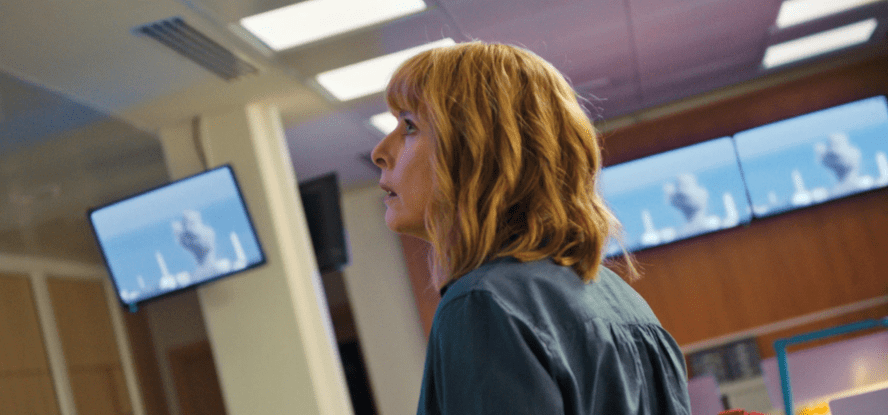 Récit politique et peinture hallucinante du comportement humain en situation de crise, Tokyo Shaking est une plongée happante et sous pression dans un univers bureaucratique infernal qui se soucie moins de la sécurité de sa main d’œuvre que du maintien de son chiffre d’affaires. Alexandra représente l’entre-deux, déchirée entre ses devoirs et son instinct, encore plus poussée par sa sphère familiale qui menace constamment de s’effondrer en fonction de ses choix. Ainsi, la caméra d’Olivier Peyon épouse cette idée d’isolement, plaçant la protagoniste seule dans de grands espaces vides, idéaux pour l’étouffer et pour scruter de la façon la plus limpide possible ses moindres prises de décision. Si du point de vue technique le long-métrage est pratiquement irréprochable, il traîne cependant sur son dos un scénario souvent prévisible qui s’accapare des codes précis sans véritablement chercher à éviter le manichéisme de ses personnages et des institutions qu’il dépeint. Par son aspect largement mécanique dans l’écriture de ses dialogues, le film tombe dans des travers de drame français classique, perdant parfois le fil du suivi psychologique de ses personnages pour expliquer bien en détail au spectateur la situation dans laquelle ils se trouvent et les options qui s’offrent à eux.