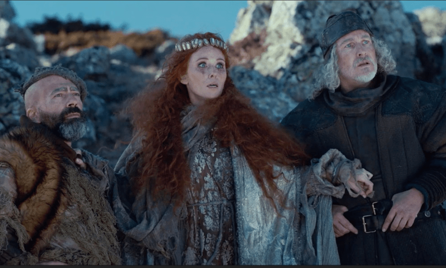 Si la réalisation est globalement qualitative mais manque malgré tout de ce côté épique et iconique que nous aurions pensé trouver à plusieurs moments phares du film, le scénario apparaît quant à lui davantage déséquilibré. Difficile de dire concrètement si Alexandre Astier a pu écrire la version du film qu’il souhaitait ou s’il a dû composer avec l’agenda chargé des uns et des autres (et donc s’accommoder d’un nombre de jours de tournage très limité pour certains) mais quelque chose dérange. Le film regorge de personnages, il y en a toute une tripotée, des anciens, des nouveaux (notamment les saxons au look très punk), un festival défile avec cette sensation que peu ont fondamentalement la place nécessaire pour exister. Un aspect » cahier des charges » mélangé à une contrainte « tout le monde n’avait pas le temps d’être là » se profilent assez rapidement, donnant le sentiment que presque tout le monde est présent mais pas toujours à la bonne place. Tout semble pourtant fait pour raviver la flamme et faire frétiller des réminiscences des heures de gloire de la série : Le Duc (Alain Chabat) et la Duchesse (Géraldine Nakache) d’Aquitaine, le roi Loth (François Rollin), Guethenoc (Serge Papagalli) et Roparzh (Gilles Graveleau) etc. sont au rendez-vous mais les interactions semblent un peu ternes. Comme s’il s’agissait de cocher les cases d’une check-list nostalgique sans apporter de nouveaux moments de joutes verbales d’anthologie. Entre certains dialogues qui tombent à plat et manquent de rythme et des interactions trop courtes pour réellement s’envoler, Kaamelott – Premier Volet nous laisse parfois sur notre faim. D’un point de vue comique autant que dramatique. Pour ceux qui se poseraient la question le film est d’ailleurs très orienté comédie, tentant de raccrocher les wagons suite à la scission opérée par les livres V et VI avec les précédents : un équilibre de ton (même si la balance était pour nous déjà parfaitement équilibrée dans les deux derniers Livres) semble avoir été trouvé au détriment toutefois de la qualité des deux registres qui doivent aussi composer avec un aspect très introductif viscéralement lié au rôle du film. Ainsi, outre l’absence d’interactions réellement savoureuses entre les personnages, et quelques dialogues qui ne font pas mouche, nous nous surprendrons également à remarquer l’absence de profondeur qui avait fait les beaux jours de la série. Qu’il s’agisse du magnifique monologue de Pierre Mondy (épisode 8 du Livre VI) ou de celui d’Arthur (neuvième et dernier épisode du même Livre), rien ne se hisse à la hauteur des envolées lyriques passées. Alors oui de beaux clins d’œil à la série sont présents comme Arthur qui semble ému devant une nouvelle table ronde bricolée avec les moyens du bord mais qui a l’avantage d’être bel et bien ronde, afin qu’aucun chevalier « ne se retrouve assis dans un angle », oui les gimmicks des uns et des autres sont présents mais les cahotements des personnages laissent souvent un goût d’inachevé. Presque tout le monde est là (nous remarquerons tout de même l’absence de Simon Astier), mais peu ont le temps d’exister…même en deux heures. Léodagan et Dame Séli (couple que nous avons connu plus en forme) semblent par exemple traverser cet opus tels deux spectres qui font acte de présence.