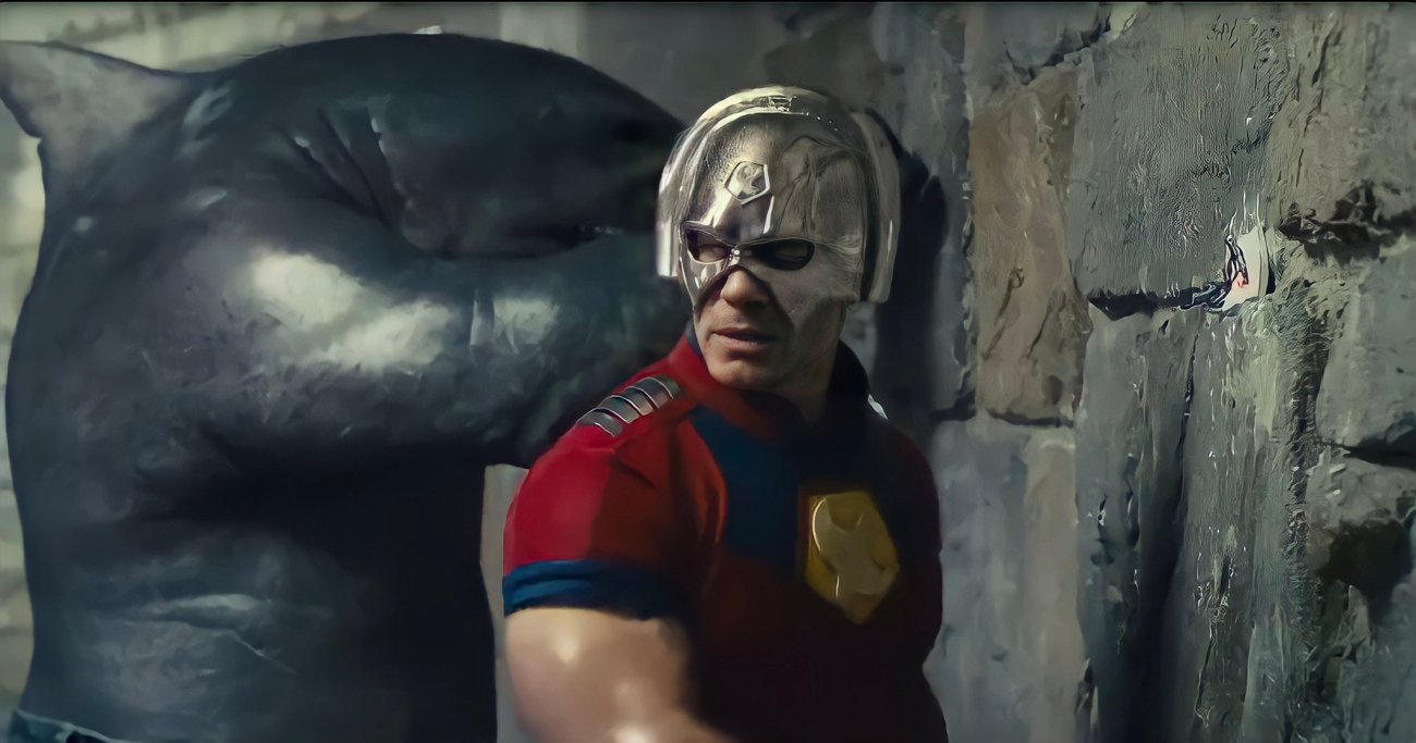Gunn trouve un équilibre entre les moments loufoques et graves afin que les deux se complètent. Les personnages tous déviants n’en sont pas moins attachants et il capitalise sur le concept de mission suicide et l’étendue de son casting pour accroitre l’imprévisibilité de son intrigue. On réalise très vite qu’aucun personnage n’est à l’abri, à aucun moment d’une mort violente ce qui contribue à ramener de vrais enjeux dans un genre devenu trop prévisible . Tous les comédiens sont excellents et semblent profondément adhérer au ton singulier du matériau de Gunn. Du coté des rescapés du film précédent Margot Robbie annonce dans la presse qu’elle va sans doute faire une pause dans le personnage d’Harley Quinn qu’elle reprend ici pour la troisième fois et cela apparait naturel tant son potentiel n’a jamais été aussi pleinement réalisé qu’ici. Harley Quinn est un personnage qui vit en décalage, dans sa propre réalité, avec sa fréquence propre mais aussi une figure particulièrement dangereuse et imprévisible. Il lui offre une séquence d’action massive aussi belle et poétique qu’ultraviolente, sans doute le sommet du personnage à l’écran. Viola Davis reste la retranscription parfaite de la Amanda Waller des comics, elle est ici encore plus impitoyable que sa version papier. Dans le film de Ayer, Joel Kinnaman nous était apparu complètement miscast dans le rôle de Rick Flag, le relai implacable sur le terrain de Waller puisqu’il semblait tout aussi instable que les membres de l’équipe. Il se rachète totalement ici, plus drôle, plus naturel car le scénario offre à son personnage une véritable arche narrative. Mais les nouveaux venus sont trèees loin d’être en reste , John Cena est fantastique dans le rôle de Peacemaker traité ici comme une parodie des héros vertueux à la Captain America, déterminé à sauvegarder la Paix à tout prix même si pour cela il doit tuer des femmes et des enfants. L’ancienne star du catch confirme qu’il n’est jamais aussi à l’aise au cinéma que dans des rôles comiques, il est ici tout à la fois bad-ass, hilarant et terrifiant (l’acteur retrouvera James Gunn pour une série centrée sur le personnage pour HBO Max dont on ne vous dit pas si elle est une prequel ou une sequel au film..) Gunn a écrit spécifiquement le rôle de Bloodsport (un ennemi de Superman dans les comics) pour Idris Elba, le comédien anglais y est impérial dans un rôle de machine à tuer, héros réticent que Gunn iconise à chaque plan. Son interaction avec la découverte du film la jeune actrice portugaise Daniela Melchior qui incarne Cleo Cazo aka Ratcatcher 2 -la fille du précèdent détenteur du titre – est touchante. L’ancien Doctor Who Peter Capaldi est répugnant à souhait dans le rôle du Thinker et s’octroie une des meilleures répliques du film. A vrai dire on pourrait écrire un paragraphe sur chaque comédien tant ce casting n’a pas de maillon faible.