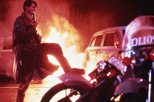 Alors, oui, on peut admettre que les scènes d’action ne sont pas à se taper le cul par terre – celle qui accompagne le générique de début est d’ailleurs un sommet de découpage foiré. Oui, le scénario est si inintéressant qu’on l’oublie vite pour se concentrer sur autre chose. Et oui, on peut clairement avoir des doutes légitimes sur les choix de casting. On voit bien que Michael Paré, ici dans le rôle central du « long manteau qui débarque en ville », traverse le film avec le charisme d’un enjoliveur, ne laissant transpirer ni émotion ni nuance d’un jeu d’acteur plus éteint qu’autre chose. Et que la belle Diane Lane, ici privée de tout ce qui aurait pu amplifier son jeu (elle fait hélas du playback pendant les scènes chantées), se contente de jouer la figurante professionnelle – du genre qui ne fait rien mais qui le fait bien. Sans parler du fait que les caractères ne sont pas ici creusés mais à peine esquissés, en particulier ce personnage de manager condescendant joué par Rick Moranis (pour le coup inattendu dans un rôle pareil !). Ce n’est là pas un problème car, à l’image des cases d’une BD, les esquisses se développent par l’aura qu’ils dégagent dans le cadre et l’impact graphique qu’ils installent au travers d’un archétype. A ce titre, les prestations d’un Willem Dafoe encore jeunot (il tâtait déjà du cuir et de la moto dans The Loveless de Kathryn Bigelow) et d’une Amy Madigan badass à souhait (cet acolyte sans chromosomes Y est sans conteste le plus gros point fort du film) sont franchement mémorables. A eux seuls, ils offrent à Streets of Fire son identité première : un pur objet pop, hors du temps et de la réalité, qui se revoit comme la relique d’une époque qui nous aurait échappé. Ce qui le rend d’autant plus précieux et jubilatoire.