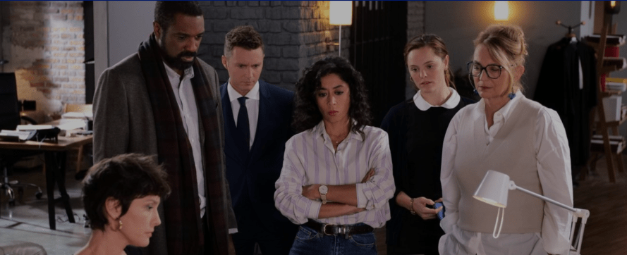 Car Le code, au-delà du soin porté à ses histoires, bénéficie d’un casting impeccable et de personnages forts et singuliers, interprétés par un casting choral inédit qui fait la part belle aussi bien à la diversité qu’à la qualité. Si les intrigues judiciaires maintiennent constamment en haleine elles sont bonifiées par l’attachement que l’on ressent pour les personnages et il faut tout le talent de Naidra Ayadi, Barbara Probst, Théo Frilet ou Christiane Millet – qui campe un personnage savoureux et atypique doté d’une grosse personnalité -pour nous attraper par le col et ne plus nous lâcher. Catherine Demaiffe et Wendy Nieto parmi les autres seconds rôles campent des personnages qui demandent encore à être développés et densifiés. Pour parachever cette distribution, c’est la figure centrale de la série, Daniel Njo Lobé, qui se taille la part du lion avec un charisme hors normes et qui donne littéralement l’impression dans chaque scène de bouffer l’écran. Les relations conflictuelles hyper tendues avec sa fille, sources de tension dramatique et probable fil rouge sur toute la saison, achèvent de conférer à l’ensemble une haute tenue. Pour accompagner les personnages récurrents, des guests comme Annelise Hesme (Nina) toute en émotion, François Bureloup (Cherif), qui fait une sympathique apparition, Gwendolyn Gourvennec en proc, toujours aussi belle et talentueuse ou Grégoire Bonnet en avocat général teigneux loin de la bonhomie qu’il peut habituellement véhiculer, sont des figures connues et rassurantes pour un début de série et agissent comme un repère familier pour le téléspectateur.