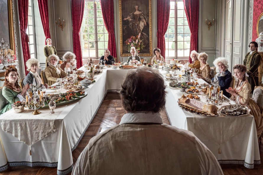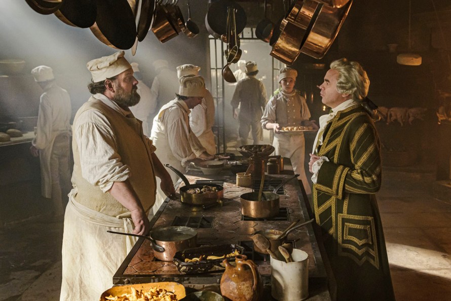 Besnard base le conflit de son film sur un parallèle très malin, prenant la Révolution Française de la fin du 18e siècle comme reflet de l’émancipation de ce groupe de marginaux face à la toute puissance risible d’une aristocratie détestable et cruelle, synthétisé par un Duc de Chamfort peut-être plus ambigu que prévu, incarné par un tantôt imbuvable tantôt malheureux Benjamin Lavernhe. Manceron père et fils, Louise et Jacob (beau-père de Pierre) vont ensemble construire une riposte face à cette bourgeoisie en déclin alors que Paris commence à prendre feu. Une double révolution thématique habilement déployée qui permet alors au metteur en scène de nourrir son film d’une véritable âme, construisant au-delà d’un feel-good movie savoureux un long-métrage aux multiples strates, à l’instar des Délicieux signatures de Manceron. L’énergie du film trouve alors un très bon équilibre dans ses variations de tons, jouant sur son originalité et son audace de narration pour mettre en image une bascule de la société française qui arrache le pouvoir aux nobles pour le partager au peuple. Délicieux dispose également d’une direction artistique impeccable, conférant à son atmosphère visuelle un aspect charmant qui permet au spectateur de se plonger dans cette époque de confrontations et de paradoxes, entre haute bourgeoisie dans l’excès total (jusque dans le surjeu de ses comédiens) et sobriété populaire dans cette modeste ferme qui se transforme petit à petit en espace de vie chaleureux qui repousse même les murs. Les décors et les costumes, tout comme la confection des plats que l’image nous donne à voir, confèrent au film un charme tout particulier qui rend le déroulement de l’intrigue d’autant plus entraînant.