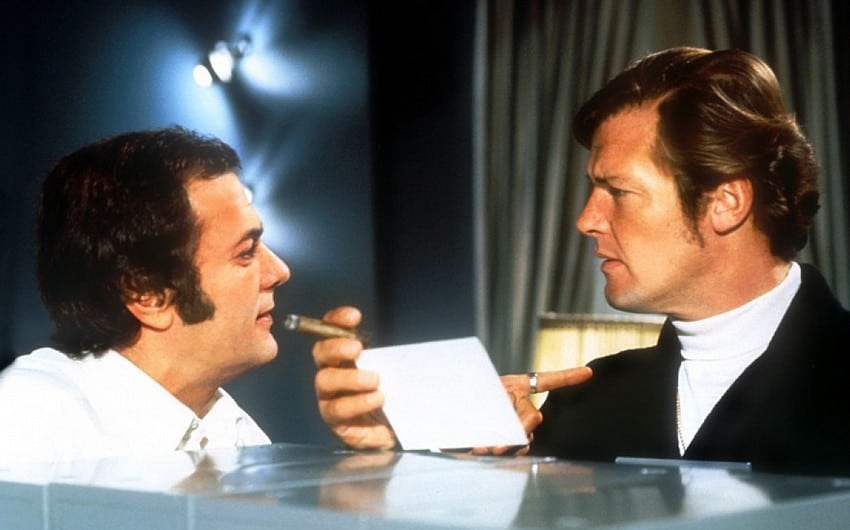 Deux hommes que rien ne présageait à se croiser jusqu’à ce qu’un juge à la retraite en décide autrement et voilà qu’Amicalement Vôtre démarre et intègre en une fraction de secondes le club tant convoité des séries cultes. Si les 24 aventures du duo ont évidemment contribuées à lui conférer ce statut envié, c’est bien ce Premier Contact (ou Overture en VO) qui pose brillamment les bases de ce cocktail irrésistible et qui va permettre à la série de prendre toute sa (dé)mesure. Si Amicalement Vôtre est une œuvre qui a traversé les années, elle le doit sans conteste à la caractérisation parfaite qui est faite de ses personnages principaux lors de ce premier épisode. Danny Wilde et Brett Sinclair, un self Made Man américain qui s’est issu des bas-fonds new-yorkais par sa seule volonté et un jeune Lord anglais oisif, deux hommes gâchant leur potentiel dans une vie frivole et dilettante. Dès le début c’est sur les prémisses d’une confrontation que le terreau de la relation entre les deux hommes va se construire. Dès que leurs voitures de luxe se croisent sur cette route de la Côte d’Azur, ils vont se jauger d’un coup d’œil avant que leur instinct de compétition ne les pousse à se livrer à une course effrénée le long d’une étroite corniche rythmée par une improbable mélodie.