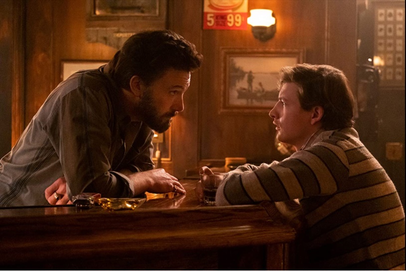 Dans le rôle de cet oncle, George Clooney retrouve un Ben Affleck en très grande forme, huit ans après leur collaboration oscarisée pour Argo. Après son excellent travail pour le rôle du diabolique Pierre d’Alençon dans Le dernier Duel (Ridley Scott, 2021), le comédien livre ici une performance de haute volée. En philosophe autodidacte, il surfe entre la sagesse et le whisky tout en enchainant les cigarettes et en s’occupant de son neveu. Les intérêts extérieurs de l’oncle Charlie sont de lire des livres et de faire des puzzles de mots, principalement pour favoriser le développement littéraire de son neveu. La deuxième partie du film, nous montre l’adolescent J.R (maintenant joué par Tye Sheridan), qui est tombé amoureux de l’écriture, une passion qui définira ses exploits à Yale. C’est là-bas qu’il va aussi tomber amoureux, cette fois-ci de sa camarade d’étude Sidney (Briana Middleton), un amour qui ne pourra jamais l’ébranler malgré les nombreuses fois où elle le rejette. La vie a rarement des solutions faciles et les réponses sont souvent complexes mais J.R aura toujours la sagesse de son oncle et le pouvoir de l’écriture. Réalisé à partir d’un scénario de William Monahan (Kingdom of Heaven et Les Infiltrés), le scénariste a restitué les qualités qui ont touché la corde sensible de tant de lecteurs comme le père perdu, la solitude particulière d’un enfant unique ou d’une mère célibataire ou encore la recherche de substituts. Malgré cela le scénario est désordonné, il a du mal à donner vie à J.R et à donner du poids aux défis auxquels il est confronté. Dans ce récit, les problèmes auxquels J.R doit faire face sont écartés trop facilement comme les difficultés financières pour payer les frais de scolarité de Yale et donne le sentiment que les gros problèmes ne pèsent que le poids d’une plume.