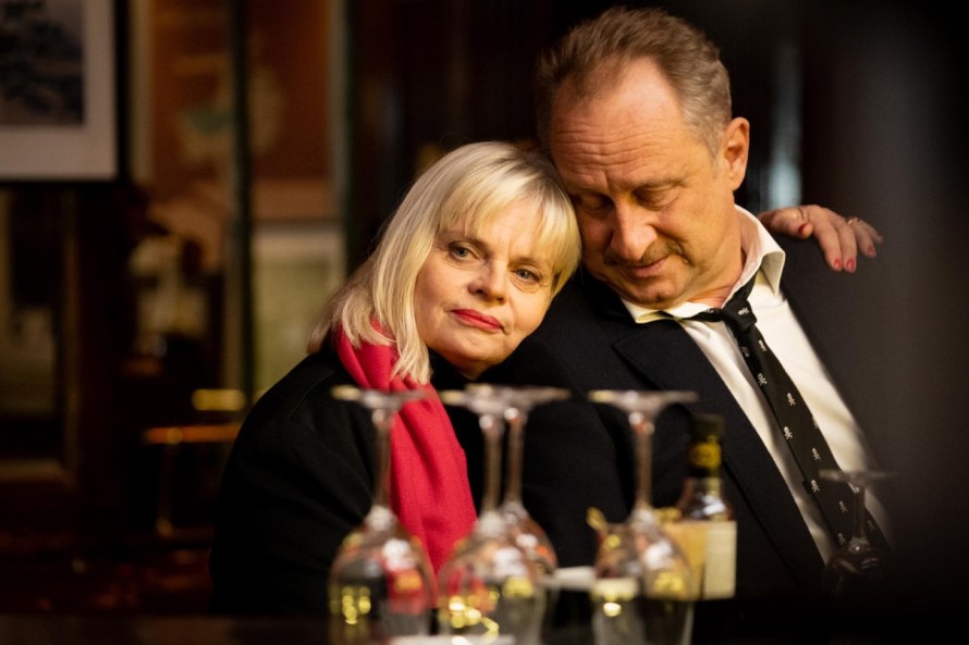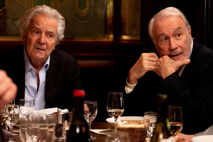 Les scénaristes Edouard Baer et Marcia Romano se servent alors des auras gigantesques de ces grands noms pour signer un film en forme d’instants de vie, durant l’espace d’un dîner alors que la nuit tombe sur Paris. Chacun autour de cette table y va de sa réplique bien cinglante pour montrer aux autres qu’il tient toujours la forme. Si bien que cette soirée prend la forme d’un spectacle bien cynique où tout le monde joue son propre personnage pour se convaincre que rien n’a changé, jusqu’à refuser catégoriquement l’accès aux petits nouveaux. De par sa structure narrative très simple, Adieu Paris finit à un moment par manquer de saveur, ne savant plus se renouveler et proposer de nouvelles choses derrière son postulat de base. On finit par être touché et attendri par cette réunion entre potes qui regardent affectueusement le passé en refusant de voir un avenir bien triste, mais comme Benoît pendant l’ensemble du film, il est aisé de rester en dehors, accoudé au bar, à écouter furtivement les diatribes, les furibonderies, les plaintes et les révélations qui fusent autour de cette table.