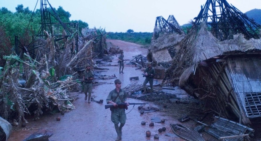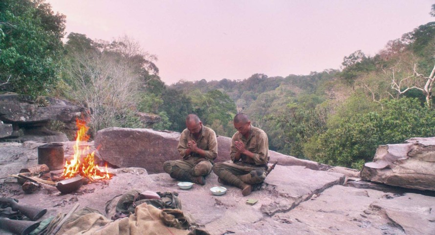 Tiré d’une « histoire vraie », devant Onoda, le spectateur va devenir le témoin privilégié de la paranoïa du jeune soldat qui s’installe progressivement, y compris quand il reste encore une poignée de camarades avec lui. Jusqu’à ce que l’on comprenne en effet qu’Onoda assume pleinement de mener une « guerre secrète, et qu’il a même était formé pour la chose… Dans ces premiers moments, où l’on perçoit le drame de l’intime qui se joue pour Onoda, apparaît le charisme du leader, qui même s’il dit n’importe quoi, si la forme y est en matière de convictions, pourra convaincre les esprits les plus faibles et fragiles. Il parviendra à faire illusion quelques temps auprès de ses hommes. Mais, affamés, les silhouettes et démarches d’Onoda et de ses soldats deviennent « zombiesques ». A part lui qui demeure dans sa folie totale, tant la formation qu’il a connu a été « lobotomisante », autant ses compagnons, qui évidemment s’amoindrissent au fil du délire d’Onada, semblent comprendre assez vite que cette guerre n’existe pas. Simplement, c’est une résignation poignante, un désespoir ancré qui fait qu’être ici avec ce fou, ou ailleurs seul… Finalement peu importe… La façon dont son dernier compagnon le regarde à un moment où il pourrait rendre les armes est une des multiples pépites que vous pourrez retenir en fonction de votre sensibilité. Cette sorte de supplique dans le regard implorant est pour le moins bouleversante… Car oui, sans trop en dire, il y a dans Onada des grandes scènes de cinéma romanesque… On peut également y trouver une forme de dénonciation au travers de cette guerre fantôme, qui vient nous dire qu’elles le sont toutes en somme. Alors, les morts en moins évidemment, mais le message demeure le même, à savoir un objet de futilité dans l’option sacrificielle de prendre son arme pour tuer l’ennemi, qui en face n’est finalement qu’un hologramme désespéré.