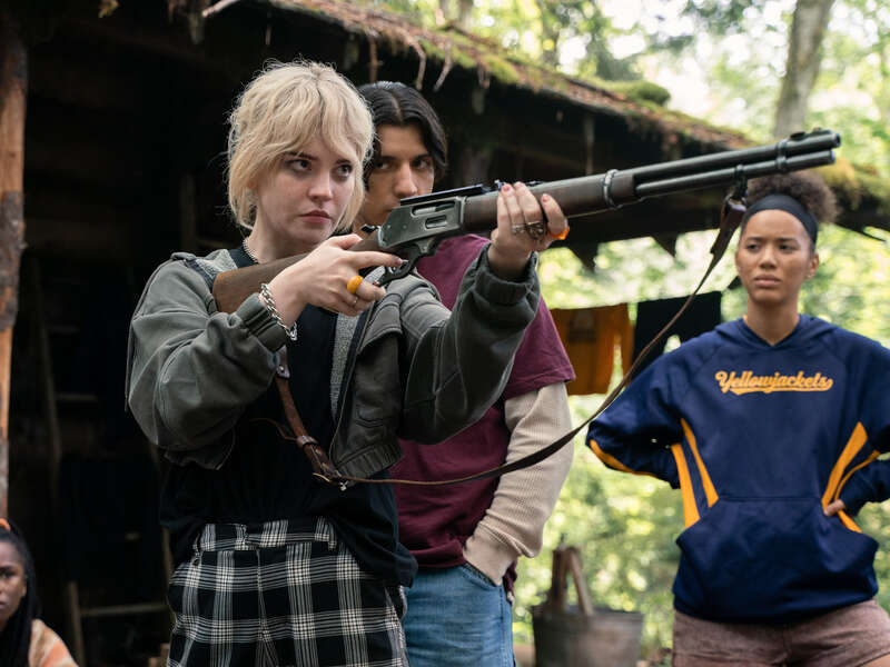 Yellowjackets est une très libre adaptation du roman Sa Majesté des Mouches de William Golding, transposant alors l’histoire de cette bande d’enfants livrés à eux-mêmes dans la fin des années 90, faisant de ses survivants une quasi-majorité d’adolescentes (à l’exception d’un des coachs et des deux fils d’un des autres membres du staff). La série aborde alors frontalement la question de la féminité et du passage à l’âge adulte dans un contexte où la parole se libère doucement – le personnage de Travis ayant énormément de mal avec les questions de liberté sexuelle chez la Femme, la faute à une éducation très traditionnelle. Et en bonne adaptation du roman, il est bien question d’un semblant de construction de microcosme survivaliste parmi ses rescapés, petit univers qui se fragilisera et implosera quand la faim et les scissions dans le groupe deviendront de plus en plus fortes. On a alors le droit à quelques sous-intrigues classiques de la série ado, entre jalousie, triangles amoureux et fantasmes inavoués, qui tendent à faire éclater le groupe. Yellowjackets a donc une structure assez inégale, rendant certains épisodes particulièrement longs. Mais cette durée – même si on a la forte impression à la fin de la série que tout est un peu vain tant la conclusion n’en est pas vraiment une – permet de suivre de l’intérieur ce petit groupe peuplé de personnalités de tout genre. Chaque personnage suit sa propre aventure, quelques scènes permettant même à certains personnages secondaires de creuser leurs problématiques et leurs arcs scénaristiques.