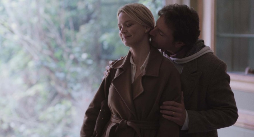 Après ses débuts avec Song, Les gouffres et Le Dos rouge, Antoine Barraud revient pour son quatrième film. Avec Madeleine Collins, il s’attaque à un thriller psychologique avec des airs de Vertigo, le tout porté par Virginie Efira. Celle-ci incarne le rôle de Judith, une traductrice à succès qui mène une double vie entre la Suisse et la France avec deux hommes différents avec qui elle a des enfants. Judith est traductrice et surtout une travailleuse sophistiquée et occupée dont le travail est la couverture parfaite pour ses nombreux voyages loin de chez elle. En effet celle-ci voyage toute la semaine pour entamer sa double vie, de l’autre côté des Alpes où elle se fait appeler Margot, vit avec un autre homme et a une petite fille. Une grande partie du pouvoir initial de Madeleine Collins réside dans ses mystères, et reconstituer le puzzle vous permet de rester engagé dans le film. Le réalisateur place le spectateur dans le doute, pleins de questions lui viennent en tête, où habite-t-elle réellement. ? Est-ce en Suisse dans un appartement avec Abdel (Quim Gutiérrez) et sa petite fille ? Ou est-ce dans un endroit glamour en France, avec Melvil (Bruno Salomone) et leurs deux fils adolescents ? Des mystères apparaissent sous les mystères. Melvil et Abdel sont-ils au courant de la double vie de leur compagne comme ils en donnent parfois l’impression ? Comment Judith/Margot a-t-elle pu dissimuler des mois de grossesse à Melvil ? Quelles sont les raisons qu’ils l’ont poussée à faire cela ? Une temporalité ambiguë qui participe au délabrement progressif de la tricheuse et révèle des drames occultés. Une fois que ses motivations sont comprises, cela ouvre tout un monde de questions complexes. Le scénario d’Antoine Barraud n’est pas s’en rappeler Vertigo d’Alfred Hitchcock, où le personnage incarné par Kim Novak y menait deux vies, et finissait par perdre pied. Ici Antoine décide d’aborder des thèmes tels que la parentalité, la classe, le privilège et le sexe.