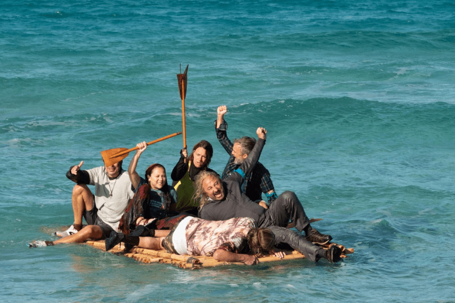Difficile de parler du Flambeau sans spoiler, nous resterons donc évasifs sur son contenu précis. Néanmoins le téléspectateur aura tout à fait ce qu’il est venu y chercher. D’un côté les codes de Koh-Lanta sont présents et poussés à l’extrême, à base d’épreuves alambiquées, de sombrero d’immunité, de construction du camp, de stratégie, et d’élimination. La saison est aussi l’opportunité de continuer à tracer le destin des personnages tout en changeant la dynamique et en jouant avec : Marcn’est plus le candidat au centre de l’attention, ce n’est plus lui qui décide qui reste et qui part, et il n’a plus le luxe d’une villa pour réaliser ses caprices. Une idée que la série tend à exploiter au maximum. Certaines storylines laissées en suspens peuvent donc perdurer, en particulier celles liées au personnage de Soraya: Marinacompte enfin lui avouer son amour, mais Marcentend bien lui aussi tenter sa chance avec celle qui était présumée morte. Difficile de dire ce qu’exploitera ou non le show lors des cinq prochains épisodes car énormément d’éléments sont disséminés ici et là, certains juste pour la blague, mais peut-être pas que. La lubie d’Yvanà voir des complots partout ou la secte de Hervéet sa communauté des enfants de Saint-Jean-de-Luz qui semblent savoir où se cache Xavier Dupont de Ligonnès, regorgent de potentiel pour pouvoir pousser les indicateurs d’absurdité à leur maximum.