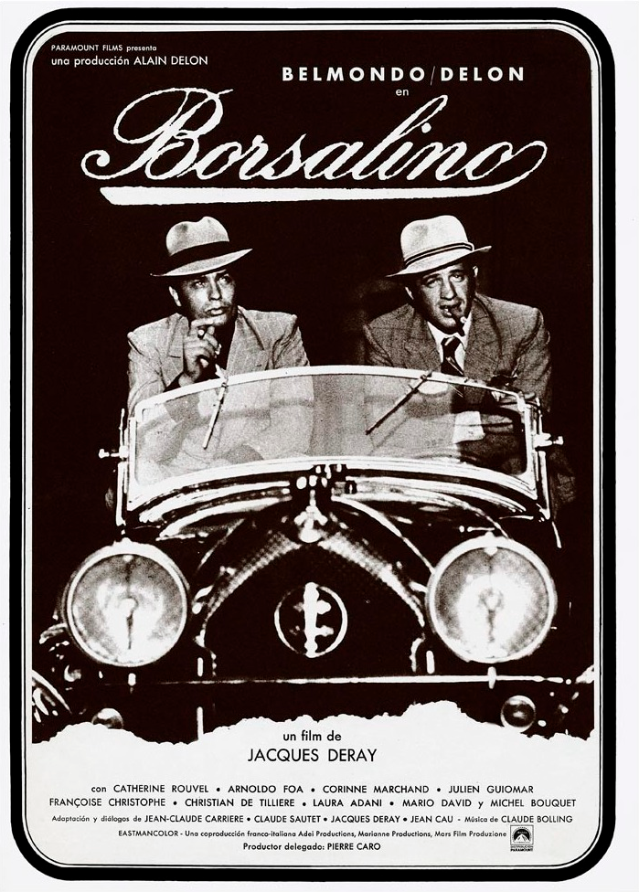 C’est pendant le tournage de La Piscine que Delon propose à Deray de mettre en scène son premier projet de producteur : la réunion Delon/Belmondo, alors l’un comme l’autre en haut du box-office, dans un film d’action dans le Marseille des années 30. Borsalino est une adaptation du roman d’Eugène Saccomano retraçant l’ascension de deux caïds de la pègre marseillaise. Deux rôles forts aux personnalités opposées et complémentaires, à l’image des deux comédiens principaux. Delon est Roch Siffredi (nom qui inspirera un célèbre acteur de film X), un être sombre, ambitieux au regard froid. Belmondo est François Capella, plus solaire, sympathique et populaire. Les comédiens jouent de leur image et affiche une complicité évidente. Deray enchaine les moments d’action et de jeu dans une reconstitution soignée, laissant au spectateur tout le loisir d’admirer les deux stars qui s’en donnent à cœur joie. Si le film est un grand succès, il restera aussi célèbre pour le différend qui opposera Belmondo et Delon lors de sa sortie. Au générique, alors qu’il était convenu que l’ordre alphabétique serait respecté et donc que le nom de Belmondo apparaitrait en premier, l’acteur découvre que celui de Delon producteur ouvre le bal avec un « Alain Delon présente » qui n’était pas prévu au contrat. Belmondo gagnera son procès et, si les médias ont souvent, par la suite, opposé ces deux grands messieurs, les principaux concernés ont, eux, toujours revendiqué une sincère amitié.