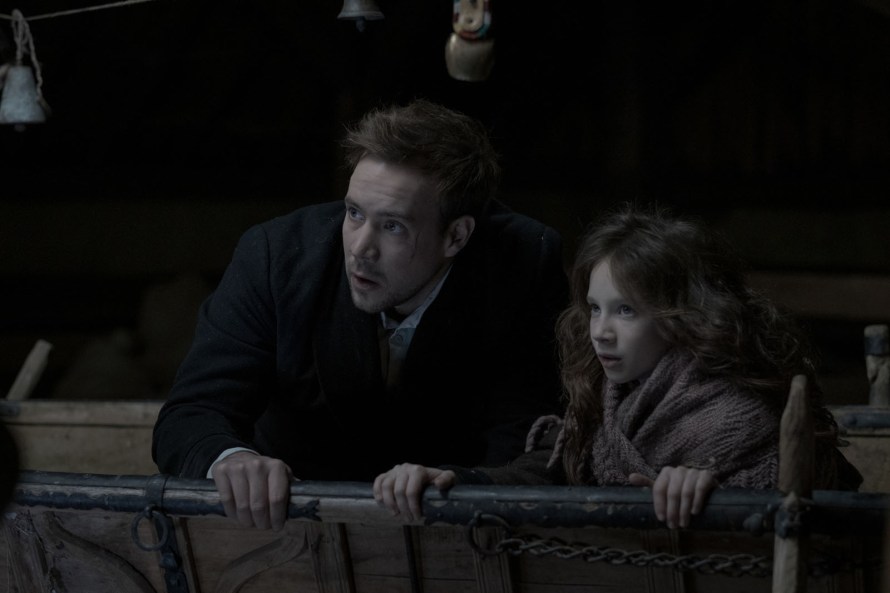 Post Mortem porte une coloration glaçante, enneigée, et souvent finalement blanche comme la mort. Sans même que l’histoire ne décolle encore lors des premières minutes, un petit frisson horrifique s’installe sympathiquement. Pour le moment pas besoin de Jump scare à l’américaine pour nous faire sursauter, on flippe à l’intérieur, dedans nous… Et comme c’est plutôt ça qu’on recherche, ça tombe pas mal. Il y a le magnétisme de la photographie, de l’image qui saisit le spectateur, mais aussi une sorte de pouvoir hypnotique d’Anna qui agit avec force sur Tomas. Elle a 10 ans, mais c’est elle la patronne. Tomas passe beaucoup de temps avec des morts, qu’il réanime en les mettant en scène comme s’ils vivaient, donc forcément, il cherche un peu les embrouilles. Mais surtout, dans Post Mortem c’est entre autre notre rapport à la mort qui est questionné. D’autant que vu le trouble de certains villageois, on se demande parfois si le vivant est mort et bien sûr réciproquement… Le frisson qui parcourt l’échine, s’il ne passe pas par le Jump scare , est mis en scène beaucoup par les cris, un peu par les images façon apparitions dans l’esprit (ou pas…) de Tomas et par une ambiance générale d’un village inquiet.