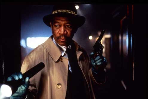 Le générique de début de Kyle Cooper, façon rock saccadé industriel, donne à voir des images en mode machine à écrire, qui balbutie et qui illustre des mains énigmatiques façon quasi subliminale (style que Fincher réutilisera à souhait dans Fight Club (1999)). Cette ambiance très travaillée va venir elle aussi assombrir le récit du polar. Même le cliché du jeune padawan et de son yoda passe crème ici, tant l’alliance des contraires est portée puissamment par Brad Pitt et Morgan Freeman qui sembleraient presque s’amuser de cette situation, et qui incarnent avec force et convictions respectivement Mills et Somerset (ce nom claque comme une star du jazz new yorkais..). Cette mythologie grecque du disciple et de son maître vu 1 million de fois au cinéma devient pourtant ici un véritable atout. Les joutes verbales existentielles émailleront leur association. Et surtout, subtilement, la femme de Mills, jouée par Gwyneth Paltrow, va s’immiscer avec délice et grâce dans ce duo. D’une part, dans le rôle du jeune premier, Brad Pitt, à la bogossitude étincelante qui va forger une irrésistible ascension pour un acteur que l’on va prendre du plaisir à voir grandir ensuite. D’autre part le vieux loup de mer en quasi pré-retraite, façon Murtaugh (en quand même moins enjoué) dans L’Arme fatale 3 (1992). Morgan Freeman livre un chef-d’œuvre d’interprétation sur un mode désabusé, en ayant déjà tellement et trop vu… Le jeune chien fou boit de la bière, le sage expérimenté est au vin… Ces détails de mise en scène n’en sont évidemment pas et installent subrepticement un récit… Somerset voit dans les tableaux meurtriers des pêchés capitaux, un puzzle criminel froidement réfléchi, fruit d’une psychose extrême. Là où Mills a tendance à simplifier la pensée du mal, n’accordant à tort que peu d’importance aux détails. Le rapport au temps est ici également fascinant… Sorti en 1995, Seven fait partie de ces films où internet balbutie à un niveau microscopique et où l’instantanéité téléphonique est lilliputienne. On peut rater des RDV et c’est normal. Il y a une urgence à agir dans Seven, mais dans une torpeur savamment orchestrée.